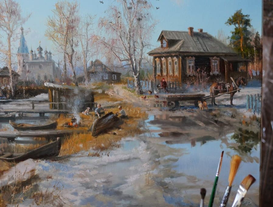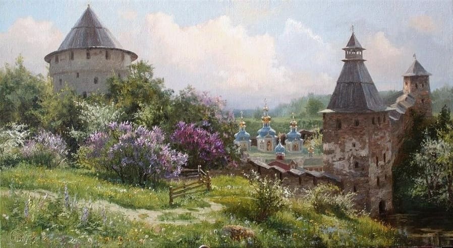 2001 г. - серия картин по старинным русским городам (Великий Новгород, Псков, Изборск, Псково-Печорский монастырь).