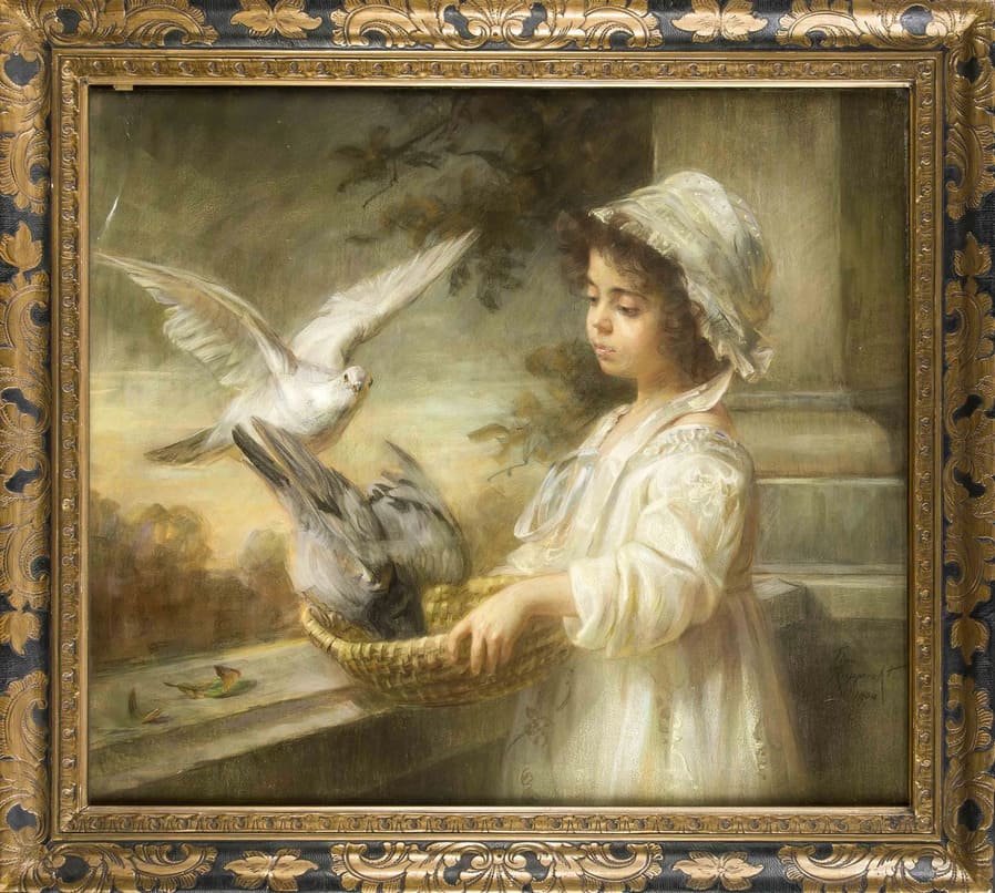Девочка с голубями на балконе, 1904 год.