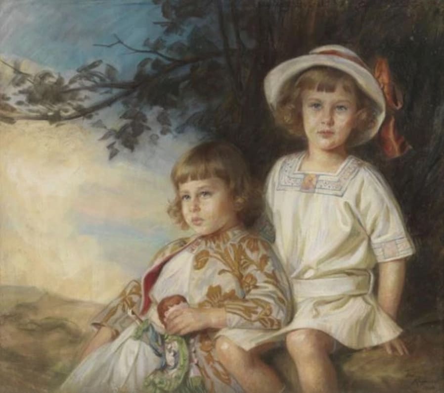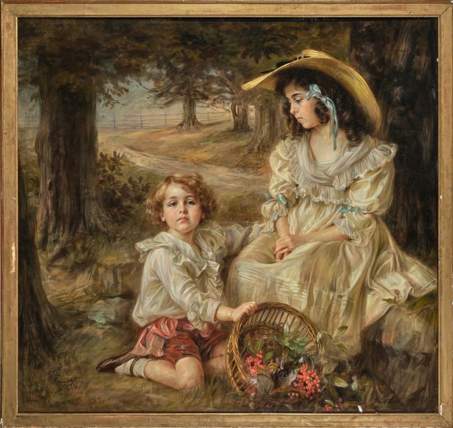 Портрет Мануэля Эскандона-и-де-Саламанки (1898-1956) и его матери Петронилы «Толиты» де Саламанка-и-Уртадо де Салдивар (1869-1951), IV маркизы де Вильявьеха, в саду с корзиной рябиновых ягод, 1902 год.