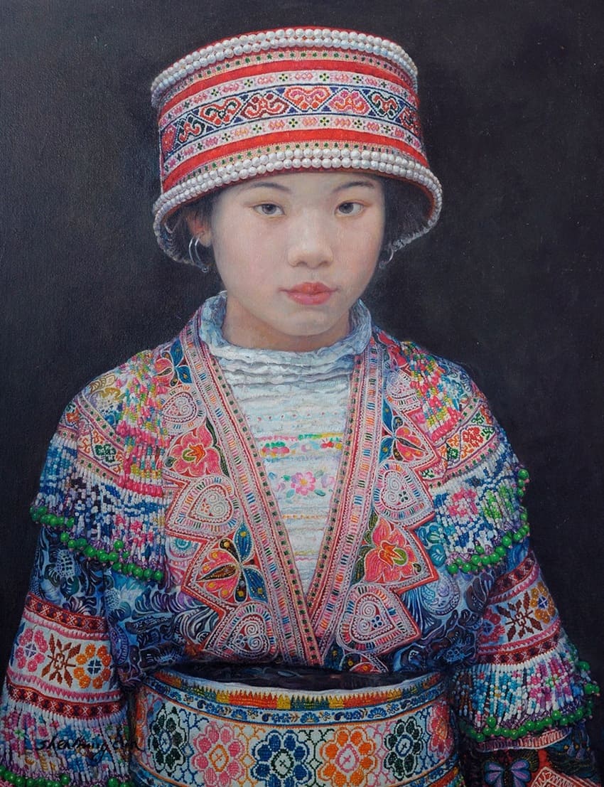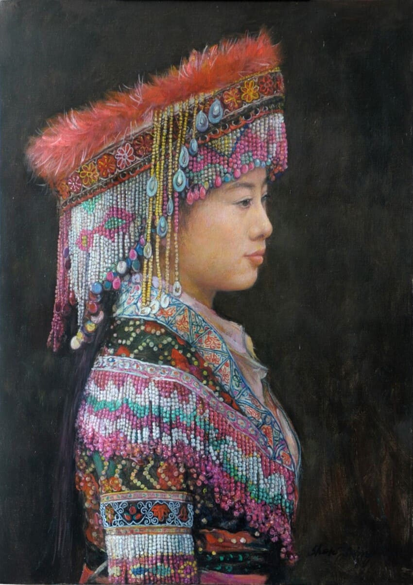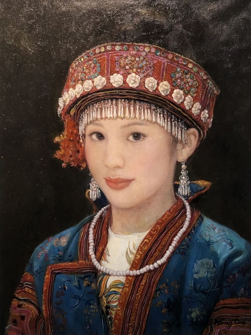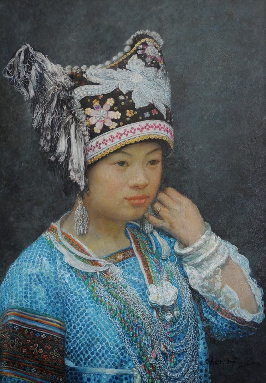 Он запечатлевает черты племён мяо, яо и дун, с лёгкостью передавая красоту деталей их традиционных костюмов и нарядов. Его портреты – прекрасные этнографические документы, запечатлевшие реалии жизни народов региона Сычуань.