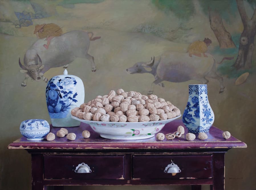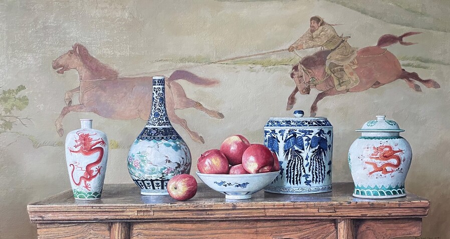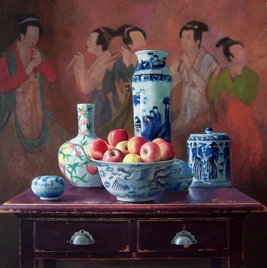 Используя классические западные техники в сочетании с азиатскими композиционными влияниями, он способен выразить движущиеся мысли через статичные объекты, обладающие вечными, эстетическими эмоциями.