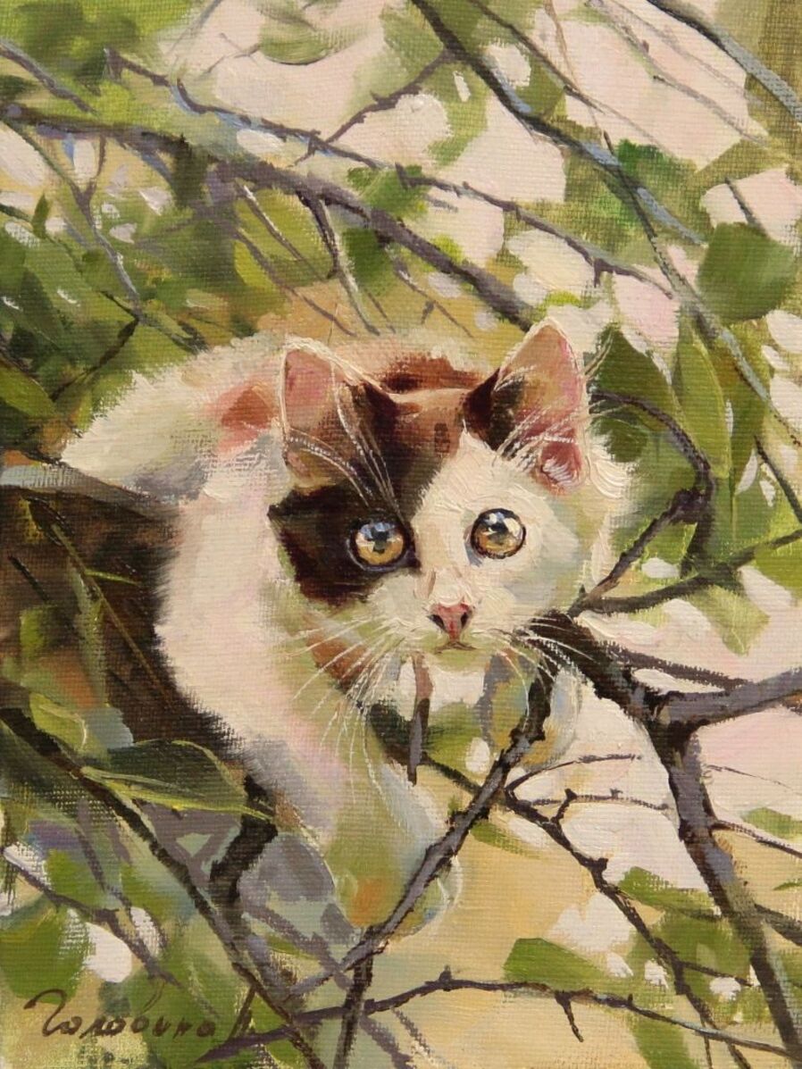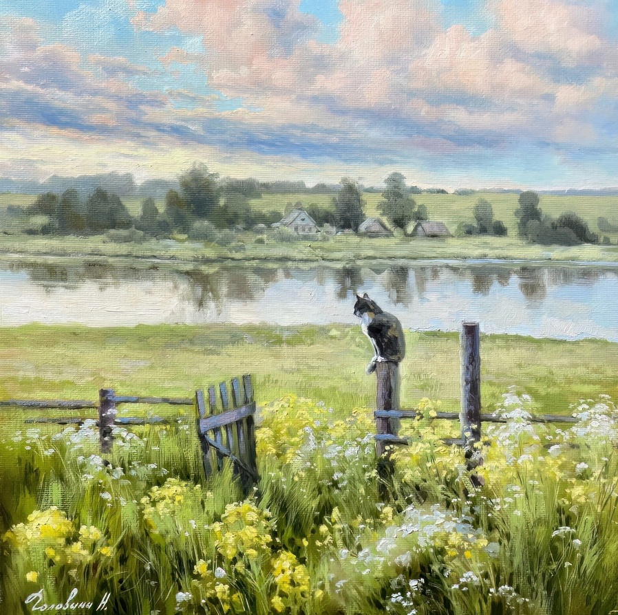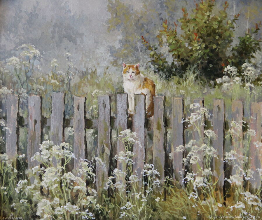 Есть два убежища от жизненных невзгод: это музыка и кошки... Альберт Швейцер Все работы художницы - здесь Головина Наталья (Россия, 1984) ПейзажноКошковое (часть-7) ***** Из всех животных я больше всего очарован кошками. Такие ласковые, теплые, но всегда окутаны тайной. Очень умные, но им нельзя доверять, потому что они непредсказуемы и непознаваемы. Что там происходит в их голове, никому не ведомо, сколько бы они ни жмурились и ни мурлыкали. Всегда гуляют сами по себе. Воплощённая независимость. А я очень ценю в людях независимость. Почему её так мало в женщинах? Я всегда рано или поздно сталкивался с тем, как женщины любят заполнить всю твою жизнь, не оставить тебе собственного пространства. Это страшно раздражает. (Елена Котова. Третье яблоко Ньютона) ***** Головина Наталья родилась в 1984 в г. Рязани. В 1999 году закончила Рязанский художественный лицей №1. С 1999 по 2003 гг. обучалась в Рязанском Художественном училище им.Вагнера, специализация: дизайн графической продукции. Результат выполнения дипломного проекта: отлично. С 1999 по 2004 гг. принимала участие в региональных и областных выставках. В 2004 г. прошла повышение квалификации в Московской Академии рынка труда и информационных технологий по программе "Web-дизайн и технические приёмы программирования" С 2004 по 2012 гг. работала в художественной (ремесленной) мастерской. С 2012 г. свободный художник. Работы находятся в частных коллекциях по всей России, а так же ближнего зарубежья, Китая, Франции, США и т.д.