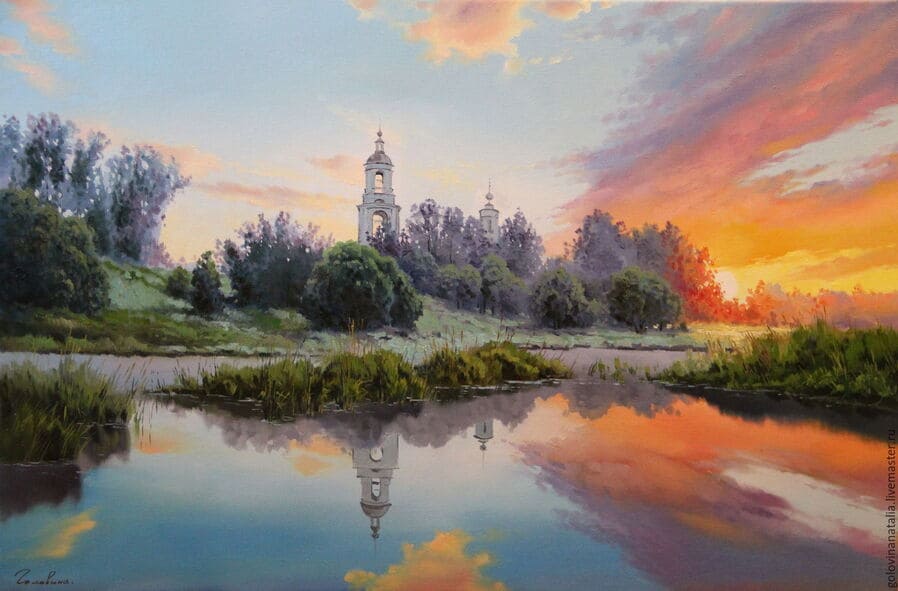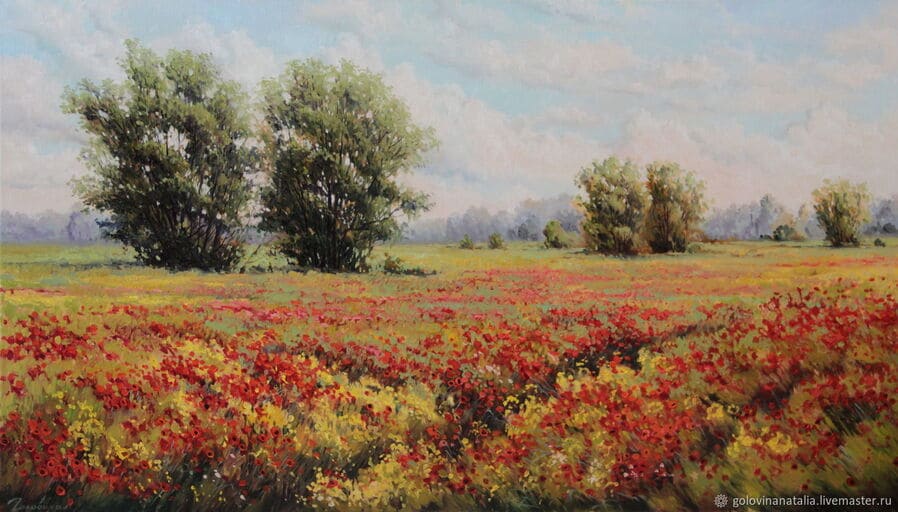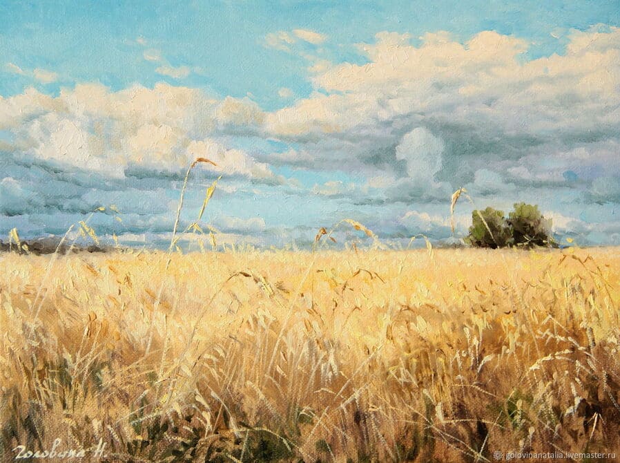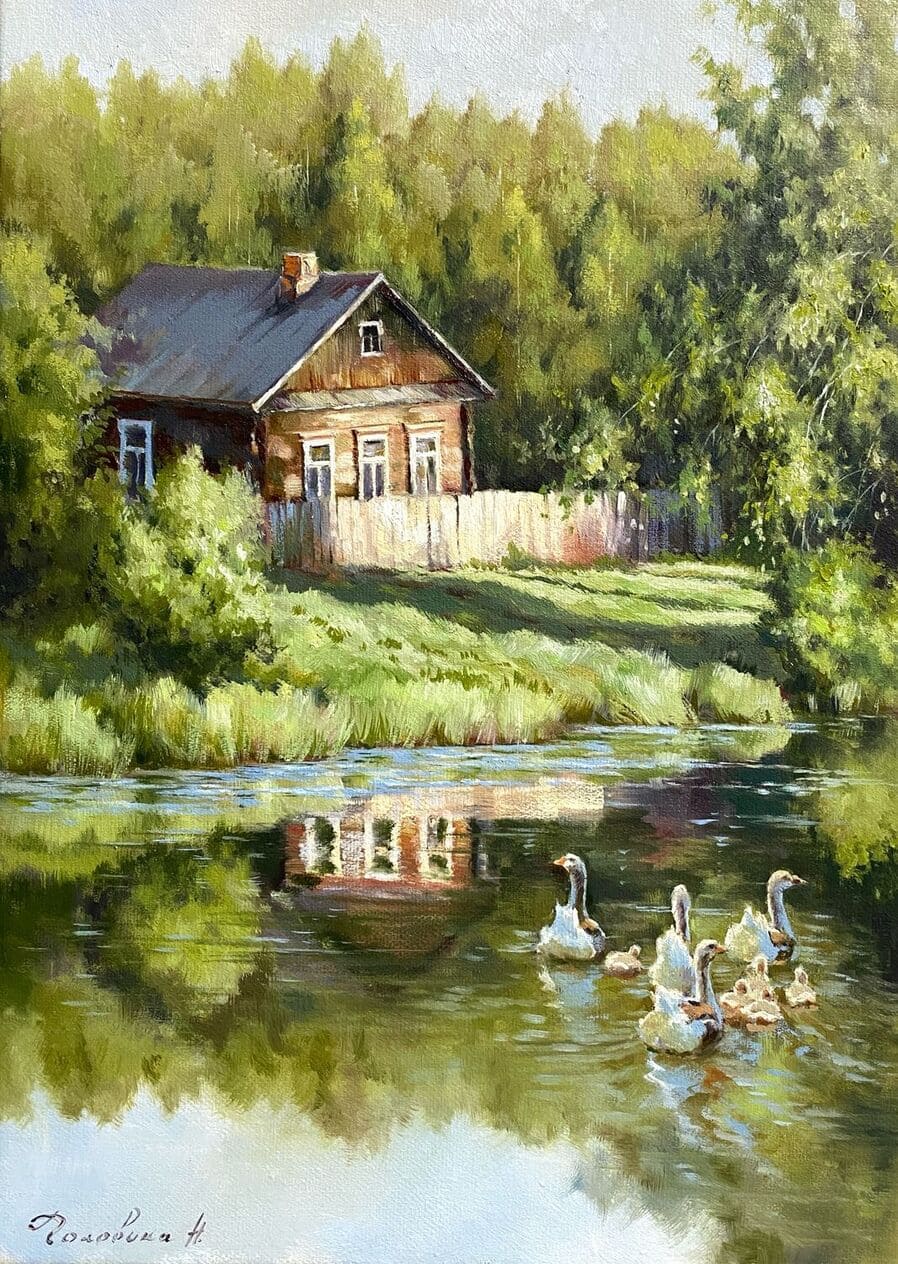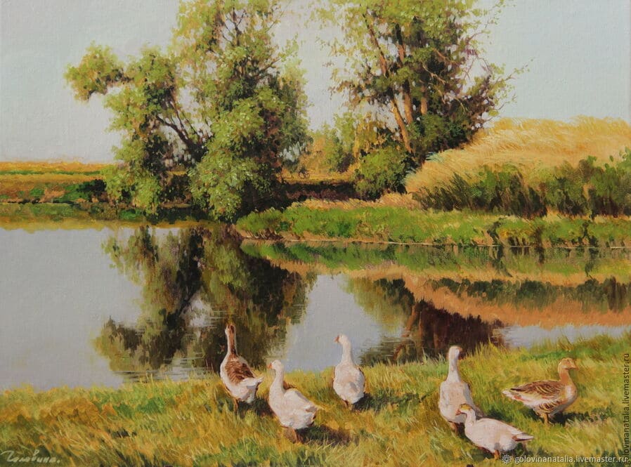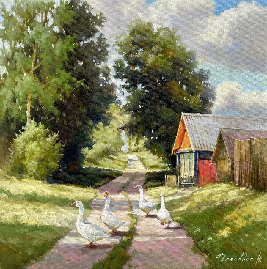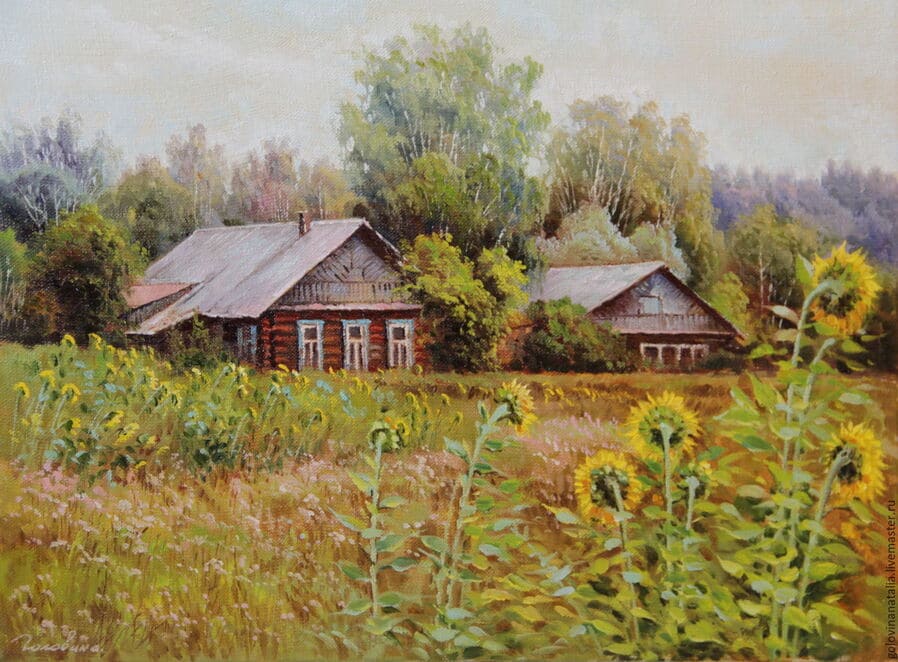 ЦветочноКомпозиционное и ВесеннеЛетнеОсеннеПейзажное- здесь Головина Наталья (Россия, 1984) ЛетнеПейзажное (часть-8) Люблю я русские просторы: Дубравы, реки, степь, поля, Моря, холмы, озера, горы... Закаты, зори, вечера.... Люблю, когда у тихой речки Сидишь в рассветной тишине. Мечтать в молчанье на крылечке - Всё это тоже любо мне. И пенье птиц, мне, как родное, И жабий хор, шум камыша... Всё забывается дурное, И отдыхает здесь душа... Моя страна! Моя Россия! Люблю я всей тебя душой! Когда безумствует стихия - Смывает грязь с земли родной. Багрянец осенью кружится... Зимой снег стелется ковром... И мало на Руси родиться, Чтоб русским стать душой, умом. Порою надо съесть пуд соли, Чтоб для себя это понять И для себя расставить роли: Кем быть? о чем грустить? мечтать?... Люблю я русские просторы, Природа дышит здесь душой: Тайга, пустыня, тундра, горы... Ужасный холод, лютый зной... Люблю, когда я на крылечке Сижу в молчанье не одна... В избушке догорают свечки... С тобою Русь душа моя... (© Copyright: Наталья Кобзева-Чеботарева) Головина Наталья родилась в 1984 в г. Рязани. В 1999 году закончила Рязанский художественный лицей №1. С 1999 по 2003 гг. обучалась в Рязанском Художественном училище им.Вагнера, специализация: дизайн графической продукции. Результат выполнения дипломного проекта: отлично. С 1999 по 2004 гг. принимала участие в региональных и областных выставках. В 2004 г. прошла повышение квалификации в Московской Академии рынка труда и информационных технологий по программе "Web-дизайн и технические приёмы программирования" С 2004 по 2012 гг. работала в художественной (ремесленной) мастерской. С 2012 г. свободный художник. Работы находятся в частных коллекциях по всей России, а так же ближнего зарубежья, Китая, Франции, США и т.д.