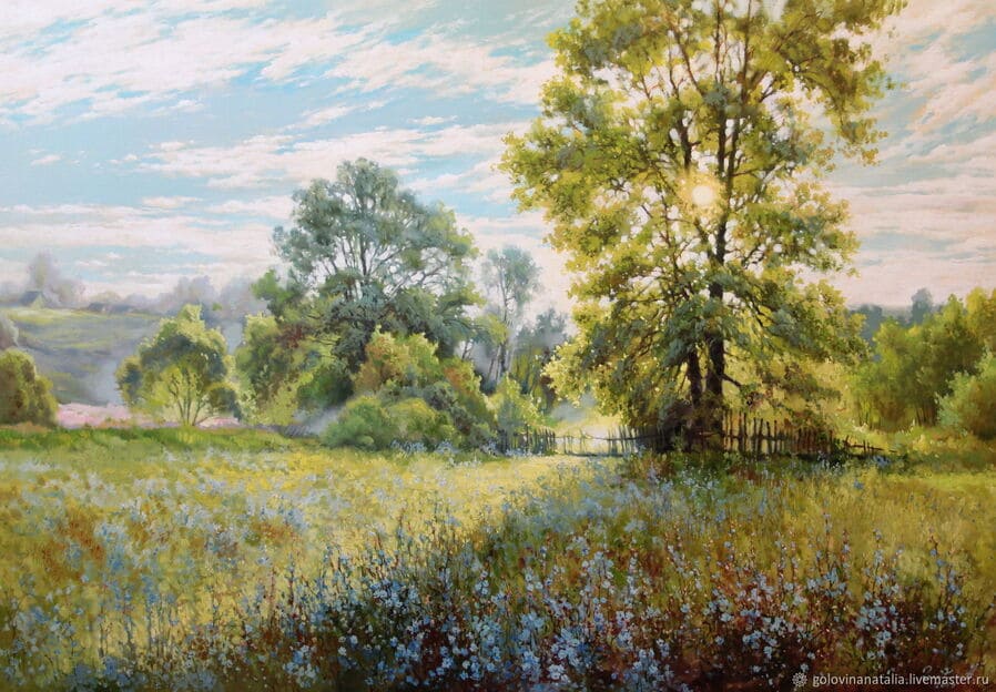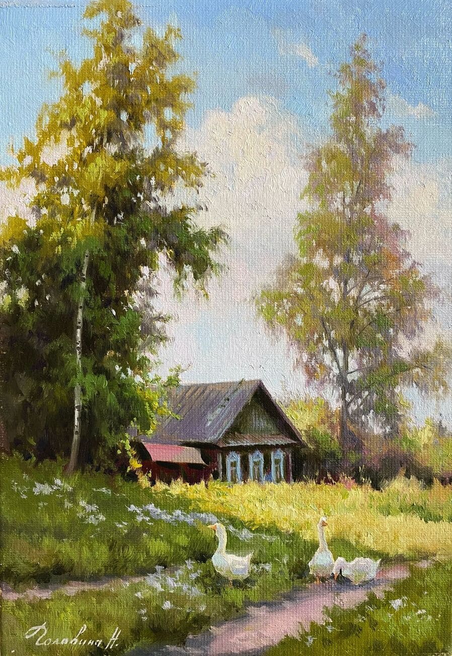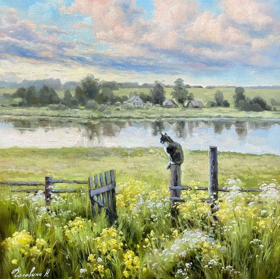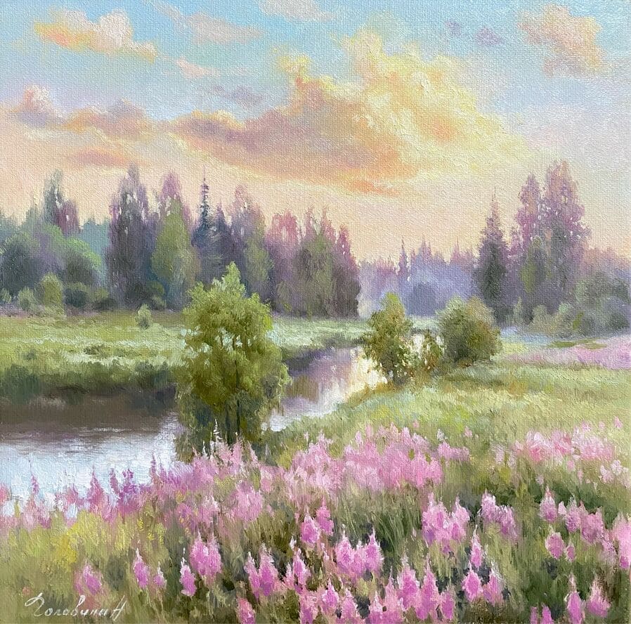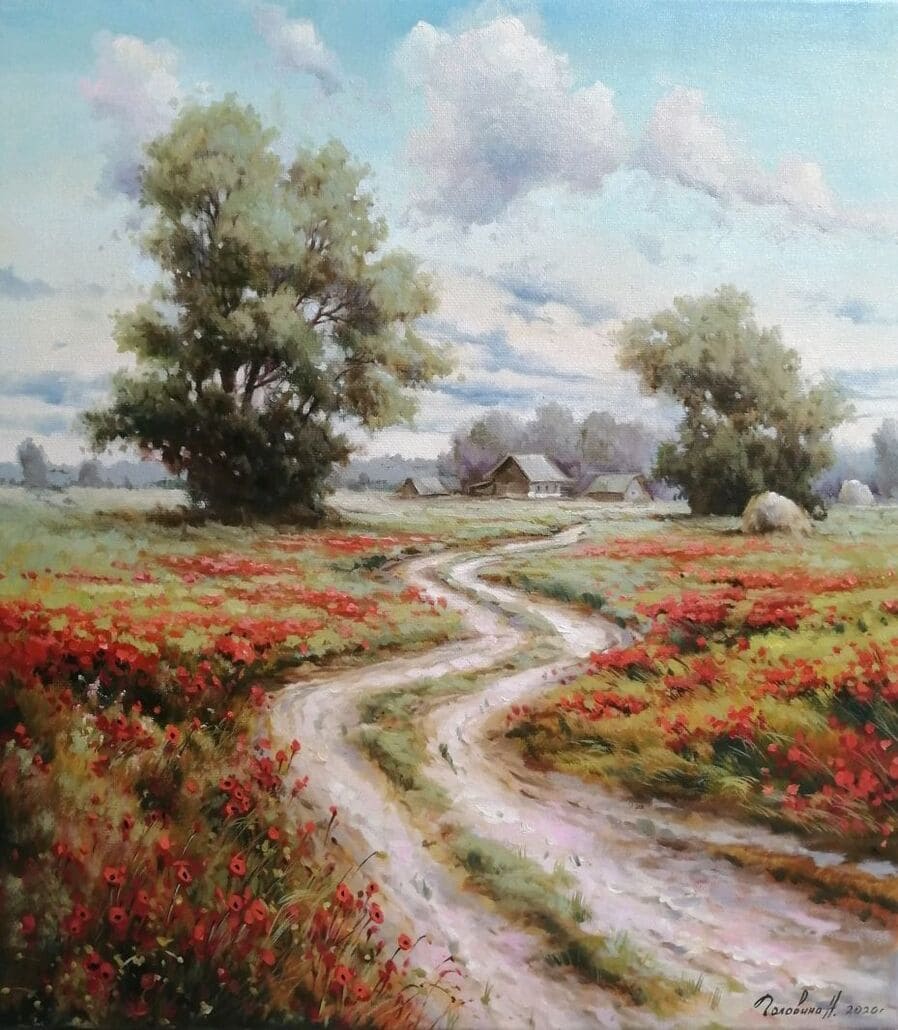 ЦветочноКомпозиционное и ВесеннеЛетнеОсеннеПейзажное- здесь Головина Наталья (Россия, 1984) ЛетнеПейзажное (часть-8) Люблю я русские просторы: Дубравы, реки, степь, поля, Моря, холмы, озера, горы... Закаты, зори, вечера.... Люблю, когда у тихой речки Сидишь в рассветной тишине. Мечтать в молчанье на крылечке - Всё это тоже любо мне. И пенье птиц, мне, как родное, И жабий хор, шум камыша... Всё забывается дурное, И отдыхает здесь душа... Моя страна! Моя Россия! Люблю я всей тебя душой! Когда безумствует стихия - Смывает грязь с земли родной. Багрянец осенью кружится... Зимой снег стелется ковром... И мало на Руси родиться, Чтоб русским стать душой, умом. Порою надо съесть пуд соли, Чтоб для себя это понять И для себя расставить роли: Кем быть? о чем грустить? мечтать?... Люблю я русские просторы, Природа дышит здесь душой: Тайга, пустыня, тундра, горы... Ужасный холод, лютый зной... Люблю, когда я на крылечке Сижу в молчанье не одна... В избушке догорают свечки... С тобою Русь душа моя... (© Copyright: Наталья Кобзева-Чеботарева) Головина Наталья родилась в 1984 в г. Рязани. В 1999 году закончила Рязанский художественный лицей №1. С 1999 по 2003 гг. обучалась в Рязанском Художественном училище им.Вагнера, специализация: дизайн графической продукции. Результат выполнения дипломного проекта: отлично. С 1999 по 2004 гг. принимала участие в региональных и областных выставках. В 2004 г. прошла повышение квалификации в Московской Академии рынка труда и информационных технологий по программе "Web-дизайн и технические приёмы программирования" С 2004 по 2012 гг. работала в художественной (ремесленной) мастерской. С 2012 г. свободный художник. Работы находятся в частных коллекциях по всей России, а так же ближнего зарубежья, Китая, Франции, США и т.д.