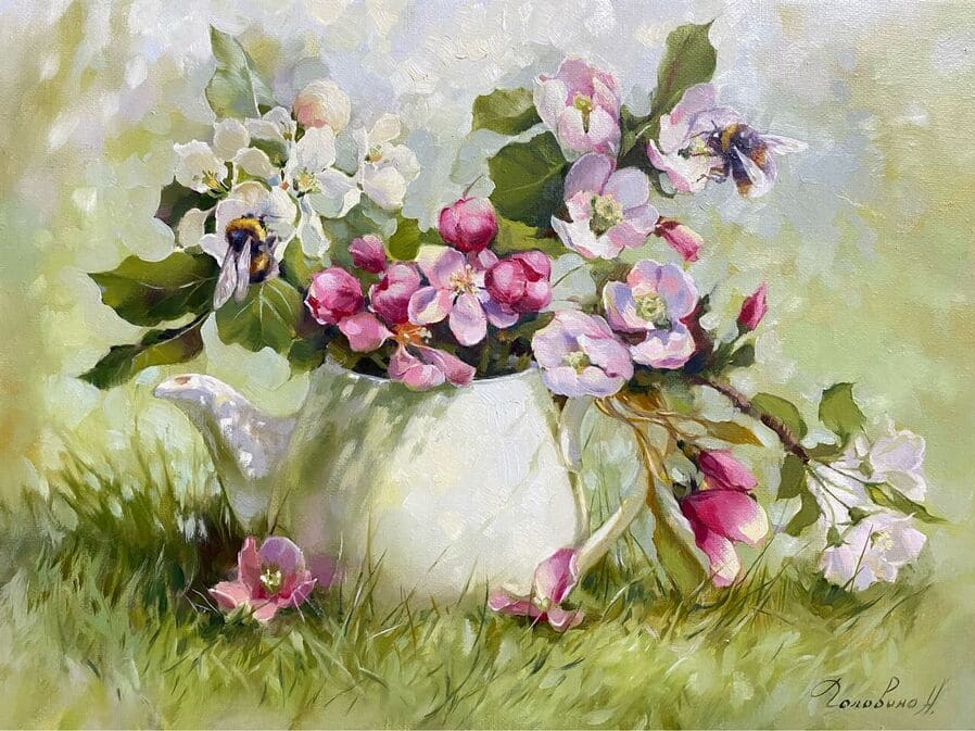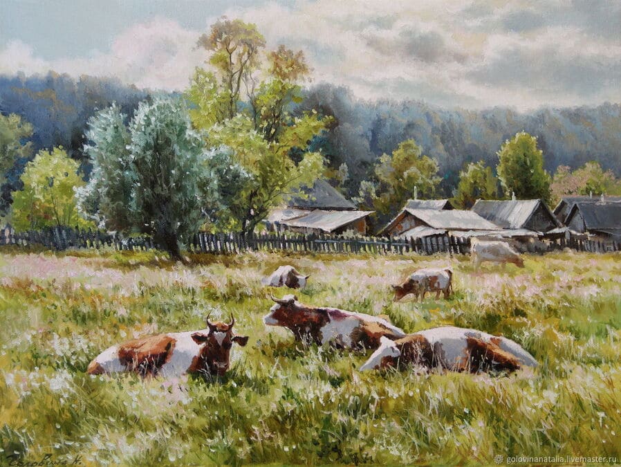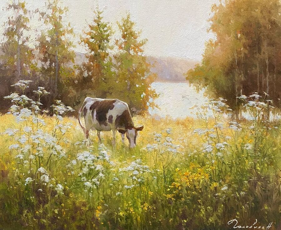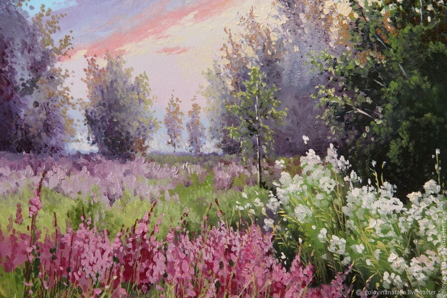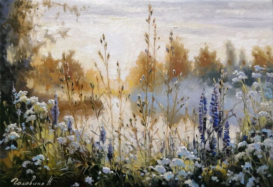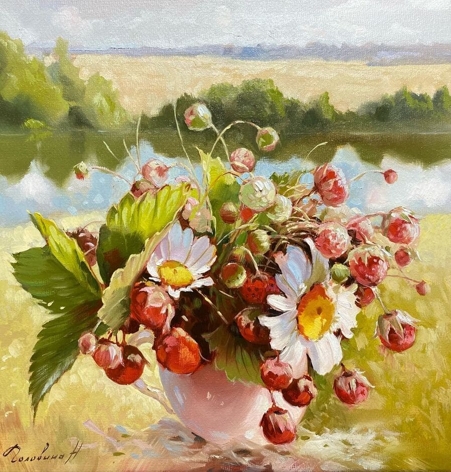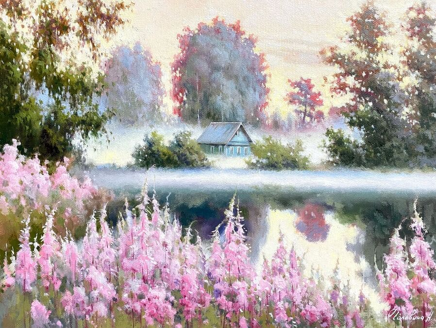 ЦветочноКомпозиционное и ВесеннеЛетнеОсеннеПейзажное- здесь Головина Наталья (Россия, 1984) ЛетнеПейзажное (часть-8) Люблю я русские просторы: Дубравы, реки, степь, поля, Моря, холмы, озера, горы... Закаты, зори, вечера.... Люблю, когда у тихой речки Сидишь в рассветной тишине. Мечтать в молчанье на крылечке - Всё это тоже любо мне. И пенье птиц, мне, как родное, И жабий хор, шум камыша... Всё забывается дурное, И отдыхает здесь душа... Моя страна! Моя Россия! Люблю я всей тебя душой! Когда безумствует стихия - Смывает грязь с земли родной. Багрянец осенью кружится... Зимой снег стелется ковром... И мало на Руси родиться, Чтоб русским стать душой, умом. Порою надо съесть пуд соли, Чтоб для себя это понять И для себя расставить роли: Кем быть? о чем грустить? мечтать?... Люблю я русские просторы, Природа дышит здесь душой: Тайга, пустыня, тундра, горы... Ужасный холод, лютый зной... Люблю, когда я на крылечке Сижу в молчанье не одна... В избушке догорают свечки... С тобою Русь душа моя... (© Copyright: Наталья Кобзева-Чеботарева) Головина Наталья родилась в 1984 в г. Рязани. В 1999 году закончила Рязанский художественный лицей №1. С 1999 по 2003 гг. обучалась в Рязанском Художественном училище им.Вагнера, специализация: дизайн графической продукции. Результат выполнения дипломного проекта: отлично. С 1999 по 2004 гг. принимала участие в региональных и областных выставках. В 2004 г. прошла повышение квалификации в Московской Академии рынка труда и информационных технологий по программе "Web-дизайн и технические приёмы программирования" С 2004 по 2012 гг. работала в художественной (ремесленной) мастерской. С 2012 г. свободный художник. Работы находятся в частных коллекциях по всей России, а так же ближнего зарубежья, Китая, Франции, США и т.д.