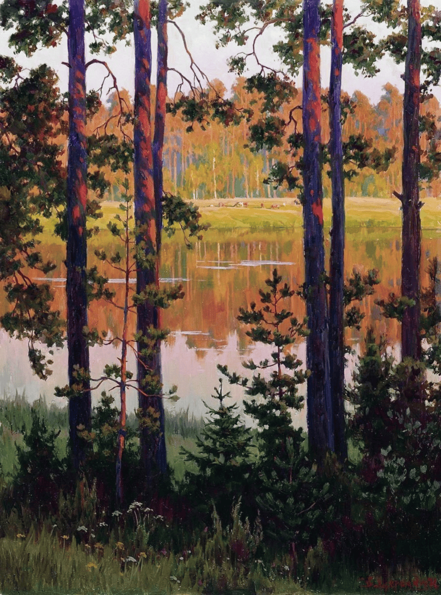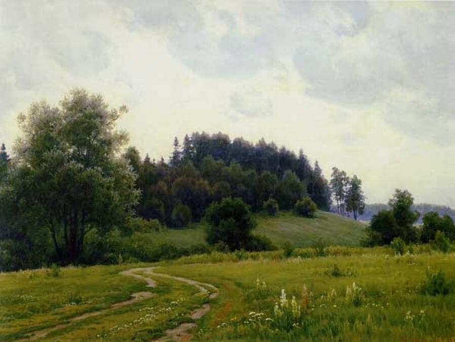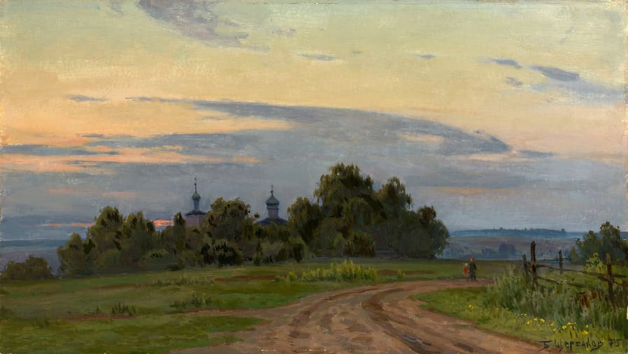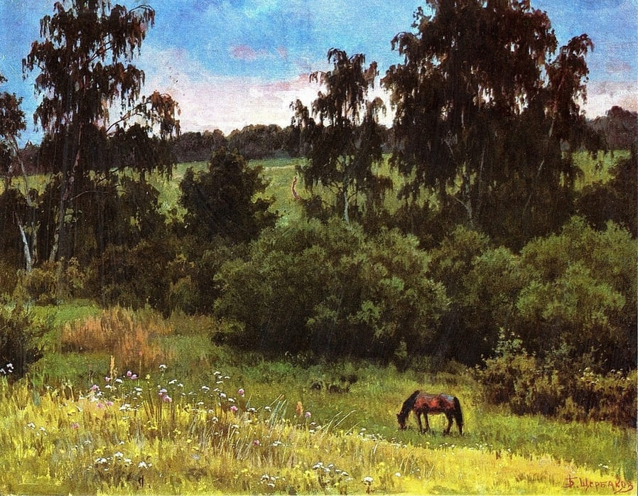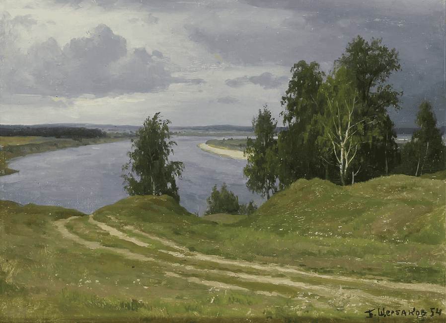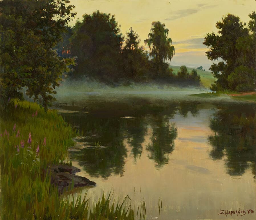 АукционноОсеннеЗимнеПейзажноНатюрмортное и биография - здесь Борис Валентинович Щербаков/Boris Valentinovich Shcherbakov (Russian, 1916–1996) АукционноВесеннеЛетнеПейзажное (часть-2) Ты у моей стояла колыбели, Твои я песни слышал в полусне, Ты ласточек дарила мне в апреле, Свозь дождик солнцем улыбалась мне. Когда порою изменяли силы И обжигала сердце горечь слез, Со мною, как сестра, ты говорила Неторопливым шелестом берез. Не ты ль под бурями беды наносной Меня учила (помнишь те года?) Врастать в родную землю, словно сосны, Стоять и не сгибаться никогда? В тебе величье моего народа, Его души бескрайные поля, Задумчивая русская природа, Достойная красавица моя! Гляжусь в твое лицо — и все былое, Все будущее вижу наяву, Тебя в нежданной буре и в покое, Как сердце материнское, зову. И знаю — в этой колосистой шири, В лесных просторах и разливах рек — Источник сил и все, что в этом мире Еще свершит мой вдохновенный век! (Русская природа, Всеволод Рождественский) Дом Льва Толстого в Ясной Поляне. Музей: Государственный музей Л.Н. Толстого, Москва "Красные Сумерки, 1977" Работы Бориса Валентиновича Щербакова неоднократно выставлялись на торги по цене от 1188 долларов США до 38 425 долларов США. С 2013 года рекордная цена для этого художника на аукционе составляет 38 425 долларов США за картину выше "Red Twilight"/"Красные Сумерки, 1977", проданную в MacDougall's в 2017 году... и 40 062 доллара США за картину ниже «В полях, Ясная Поляна», проданную на аукционе Sotheby's в Лондоне в 2021 году. «В полях, Ясная Поляна»