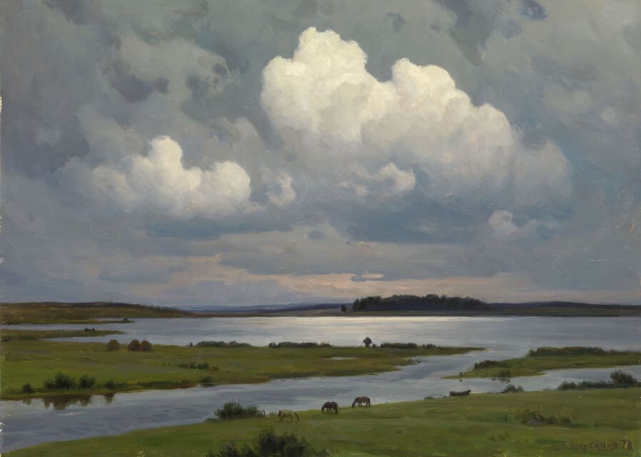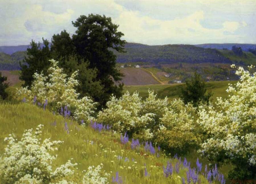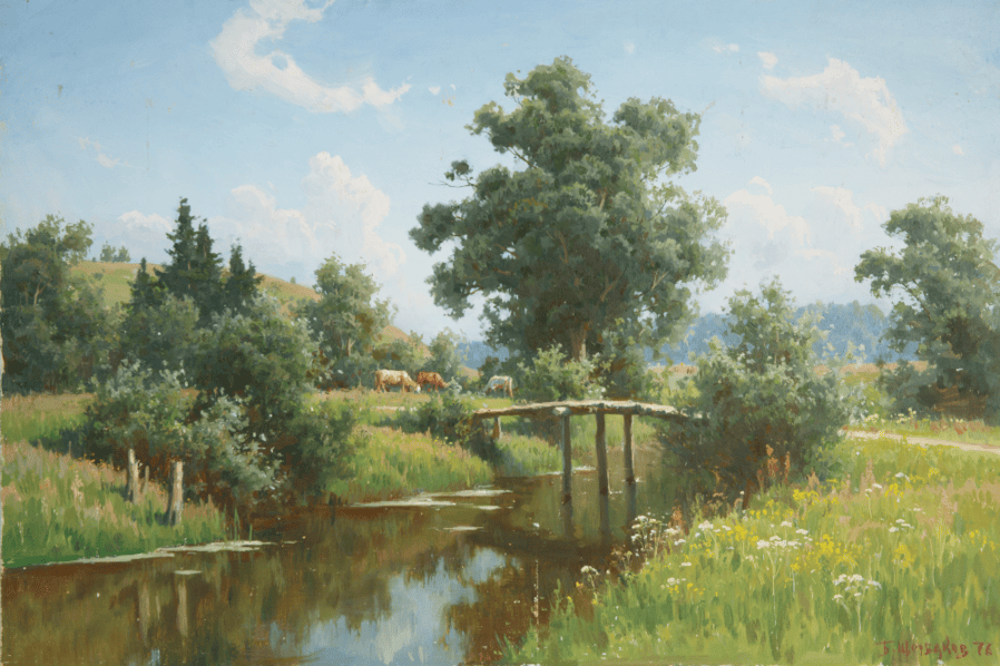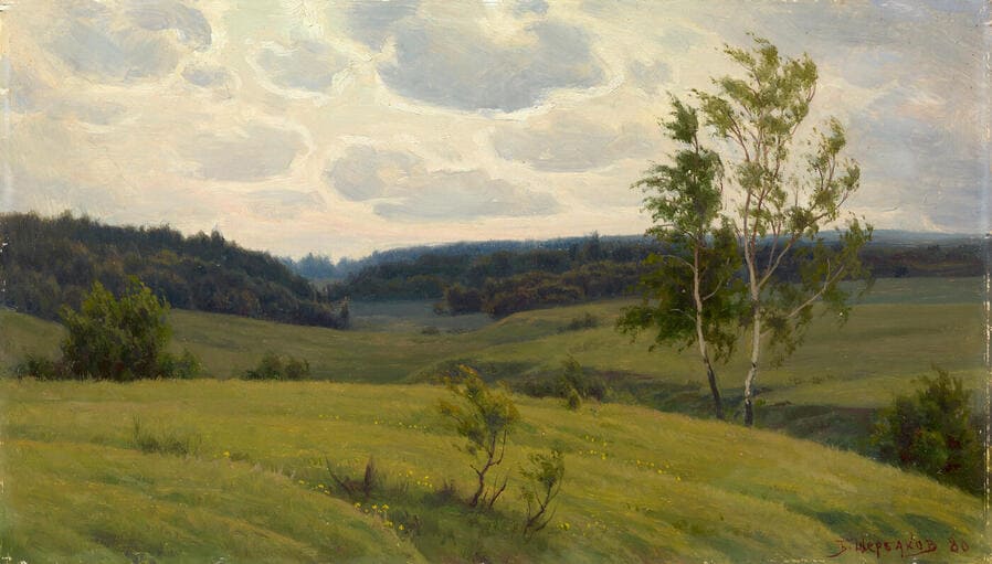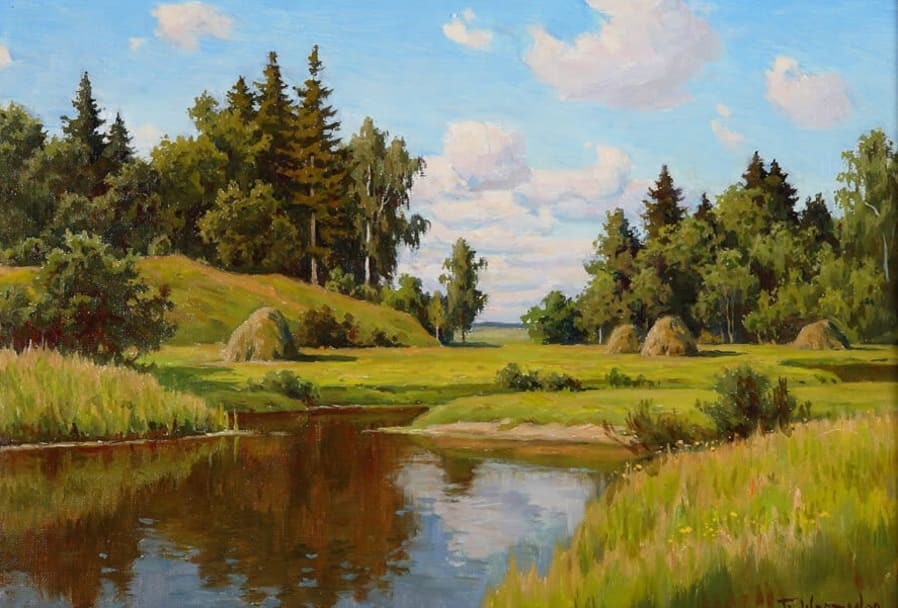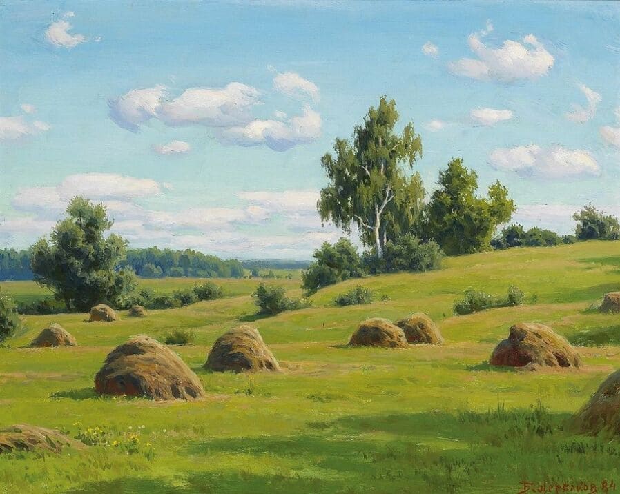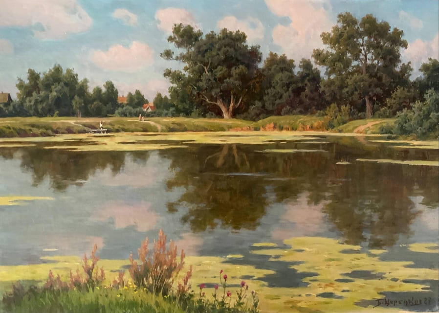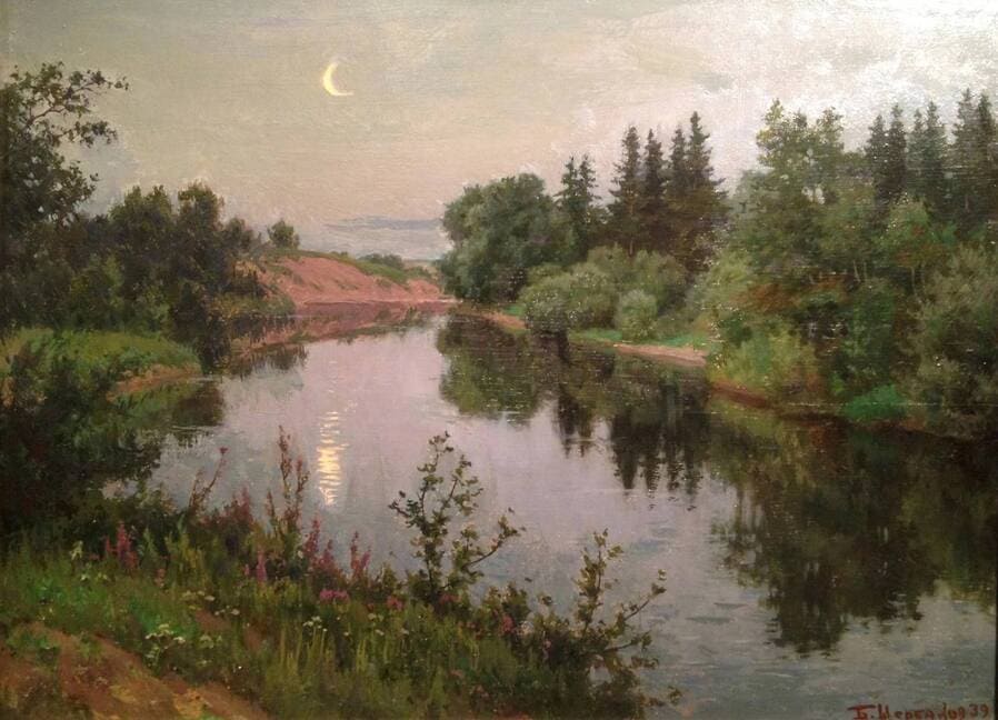 АукционноОсеннеЗимнеПейзажноНатюрмортное и биография - здесь Борис Валентинович Щербаков/Boris Valentinovich Shcherbakov (Russian, 1916–1996) АукционноВесеннеЛетнеПейзажное (часть-2) Ты у моей стояла колыбели, Твои я песни слышал в полусне, Ты ласточек дарила мне в апреле, Свозь дождик солнцем улыбалась мне. Когда порою изменяли силы И обжигала сердце горечь слез, Со мною, как сестра, ты говорила Неторопливым шелестом берез. Не ты ль под бурями беды наносной Меня учила (помнишь те года?) Врастать в родную землю, словно сосны, Стоять и не сгибаться никогда? В тебе величье моего народа, Его души бескрайные поля, Задумчивая русская природа, Достойная красавица моя! Гляжусь в твое лицо — и все былое, Все будущее вижу наяву, Тебя в нежданной буре и в покое, Как сердце материнское, зову. И знаю — в этой колосистой шири, В лесных просторах и разливах рек — Источник сил и все, что в этом мире Еще свершит мой вдохновенный век! (Русская природа, Всеволод Рождественский) Дом Льва Толстого в Ясной Поляне. Музей: Государственный музей Л.Н. Толстого, Москва "Красные Сумерки, 1977" Работы Бориса Валентиновича Щербакова неоднократно выставлялись на торги по цене от 1188 долларов США до 38 425 долларов США. С 2013 года рекордная цена для этого художника на аукционе составляет 38 425 долларов США за картину выше "Red Twilight"/"Красные Сумерки, 1977", проданную в MacDougall's в 2017 году... и 40 062 доллара США за картину ниже «В полях, Ясная Поляна», проданную на аукционе Sotheby's в Лондоне в 2021 году. «В полях, Ясная Поляна»