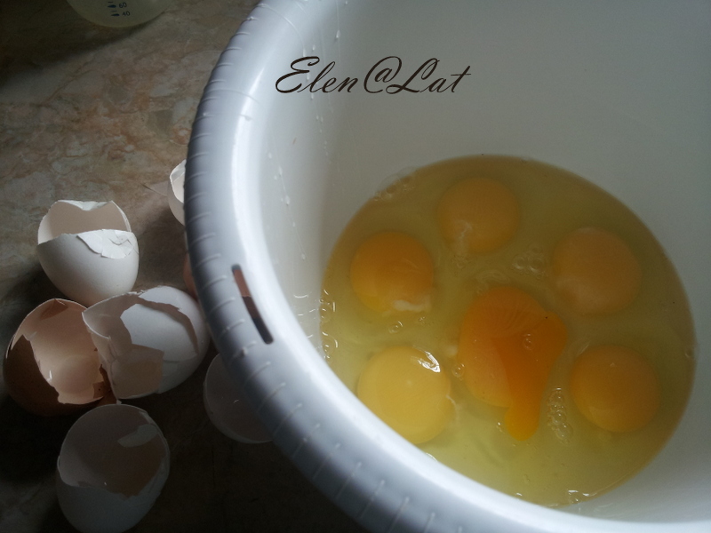 Яйца взбить с сахаром до бела.