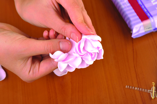 7. Большие лепестки приклейте вокруг серединки вогнутой стороной наружу.