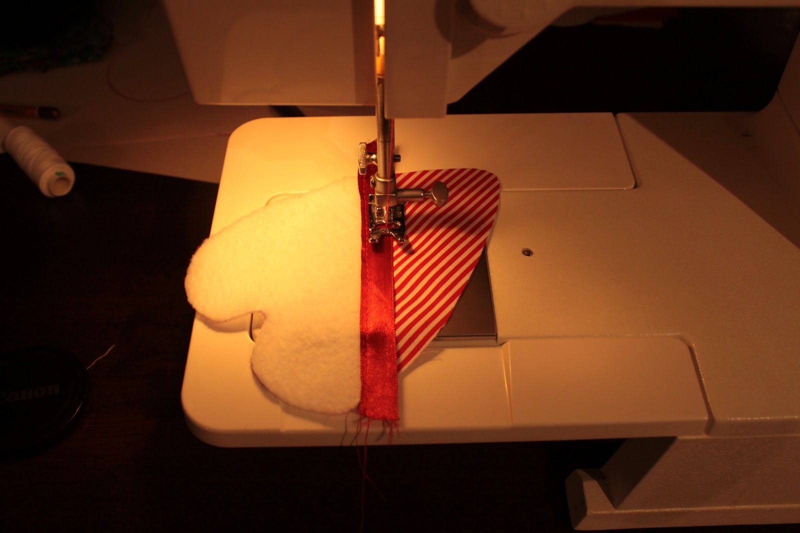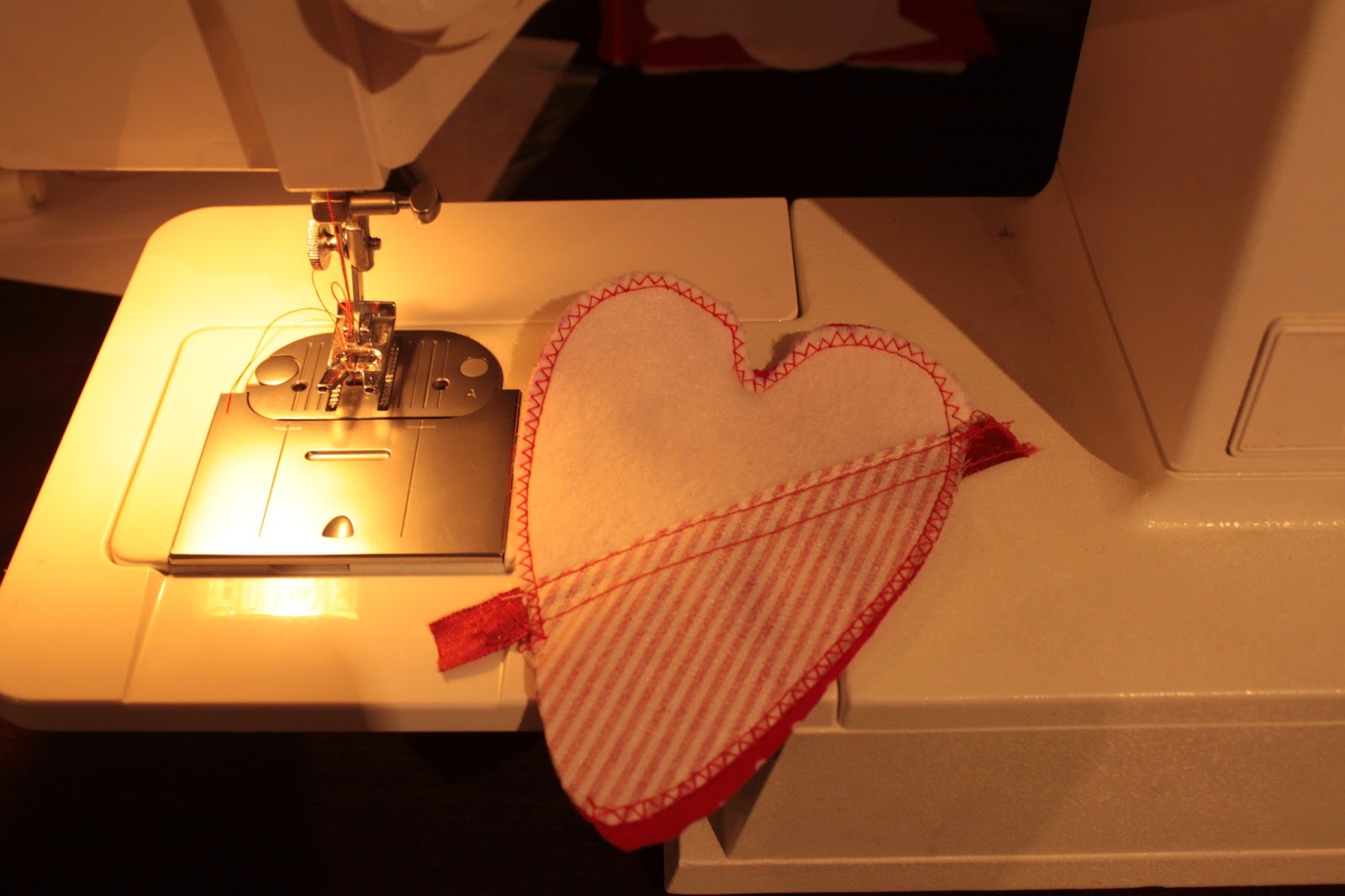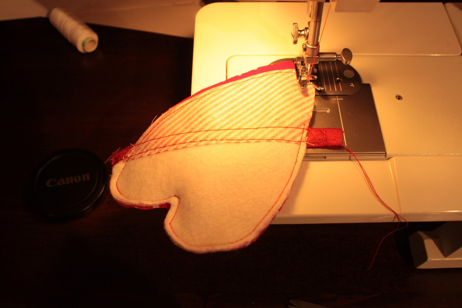 Сшивая две половинки, НЕ ЗАБУДЬТЕ вставить ленточку - подвеску и оставить не прошитое место для выворачивания сердечка.