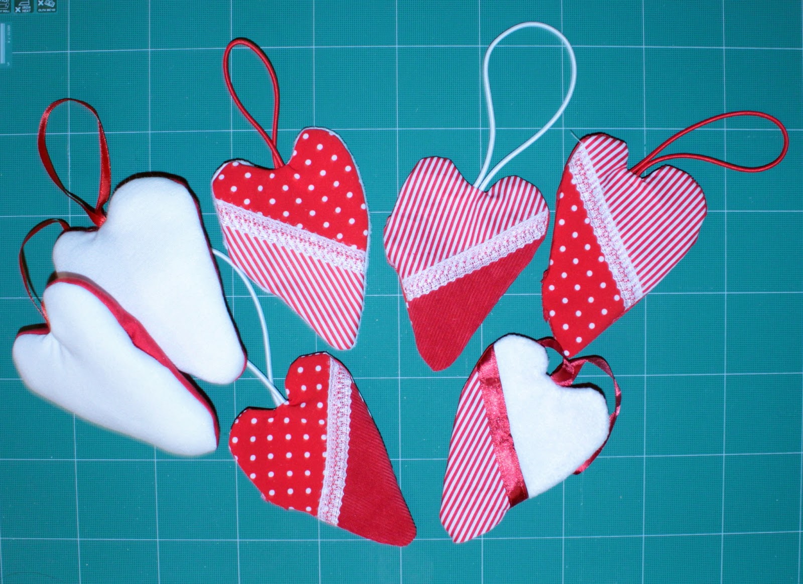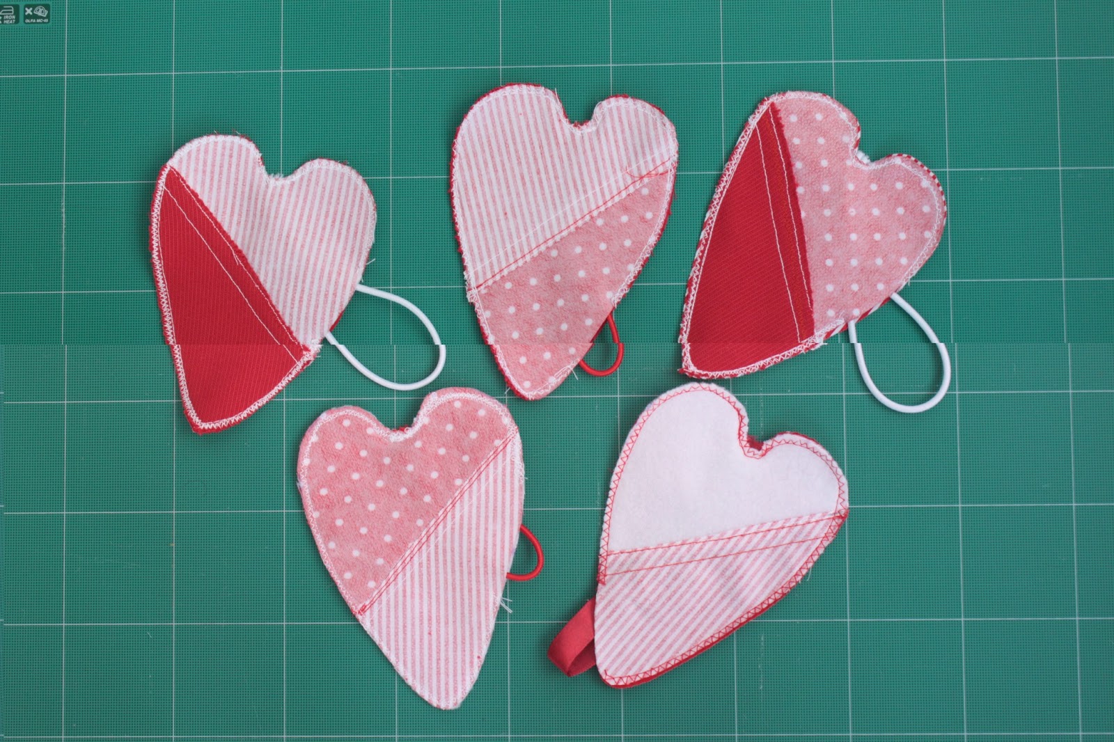 А можно ещё вот так сшить сердечки: на пробу я сшила два сердечка