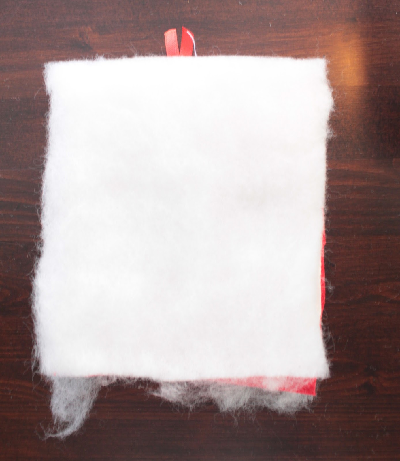 Теперь сверху и с самого низа кладем по квадратику синтепона