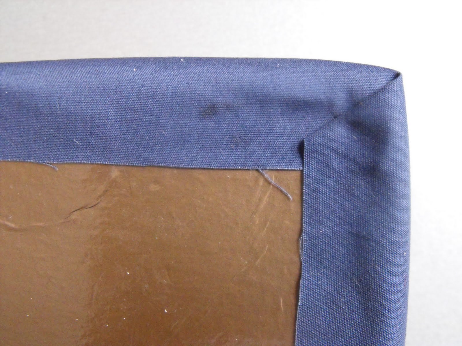 6.Обтянуть подкладочной тканью детали из картона. Положить деталь на выкройку, выступающие края подвернуть на изнаночную сторону, приклеить их.
