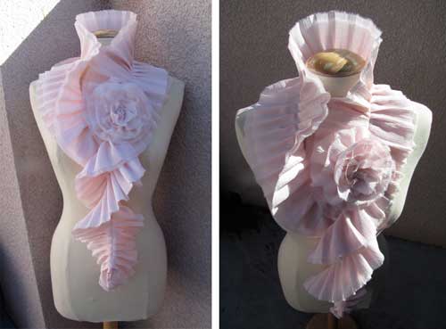 Дизайнер Мэган Тинтари/Maegan Tintari воссоздала великолепный, очень женственный и легкий, аксессуар в викторианском стиле, почти такой же, как на показе Chanel. Его можно использовать в качестве украшения на шею, так и в качестве шарфика.