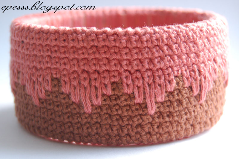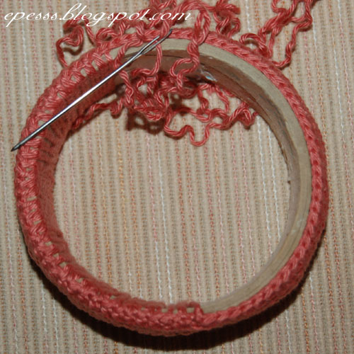 Кстати, пока я вязала, моя ниточная бобина сделала ноги, но удачно нашлась очень близкая по размеру бобина от упаковочной клейкой ленты, она в итоге и стала браслетом.