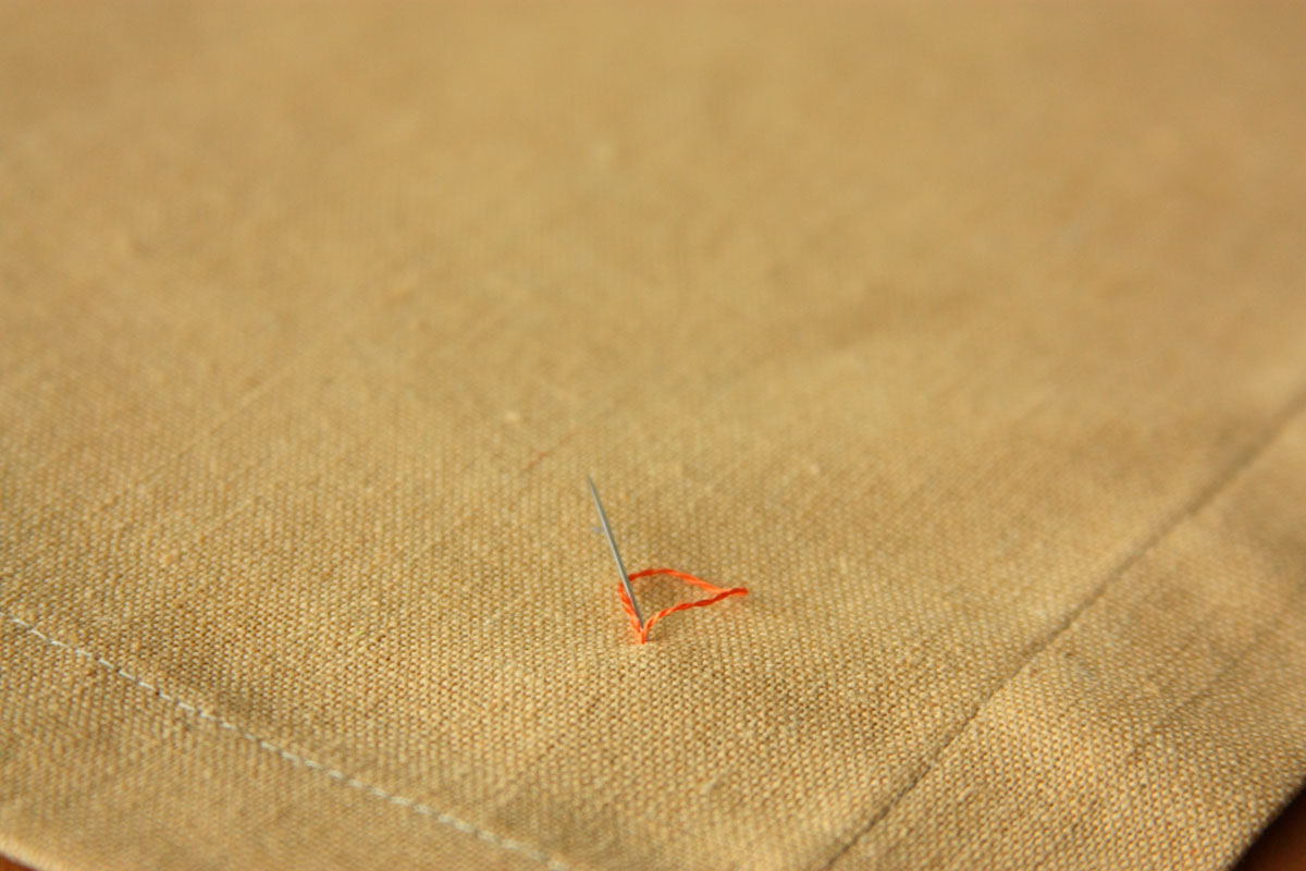 И так: со всеми четырьмя уголками. Прокладываем строчку:
