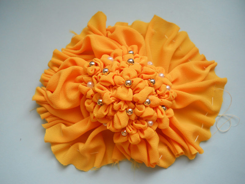 Все, наша гортензия готова!) Такой брошкой можно украсить пиджак, платье, сумку. А можно использовать такой цветок как заколку. Или еще как-нибудь. Вообщем, творите, фантазируйте! Приятного пошива!)))