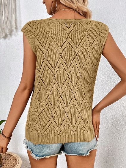 Безрукавка показана с изнанки: и полосы между "ромбами" выполнены изнаночной гладью, и виден плечевой шов. Только планка проймы выглядит так же, как и с лицевой стороны ;).