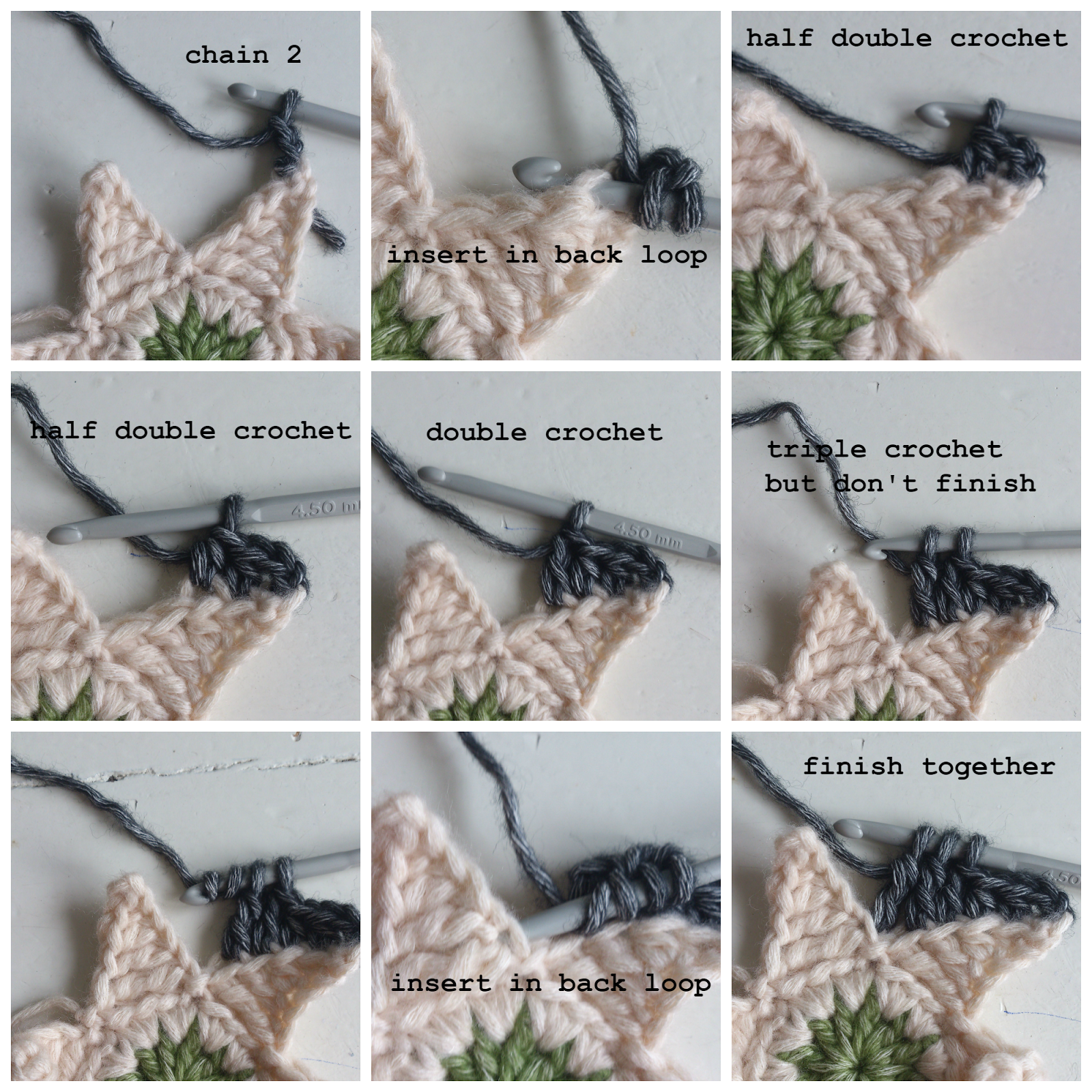 4. 2ПСТ (крючек вводим в промежуток между столбиками предыдущего ряда, на фото хорошо видно).