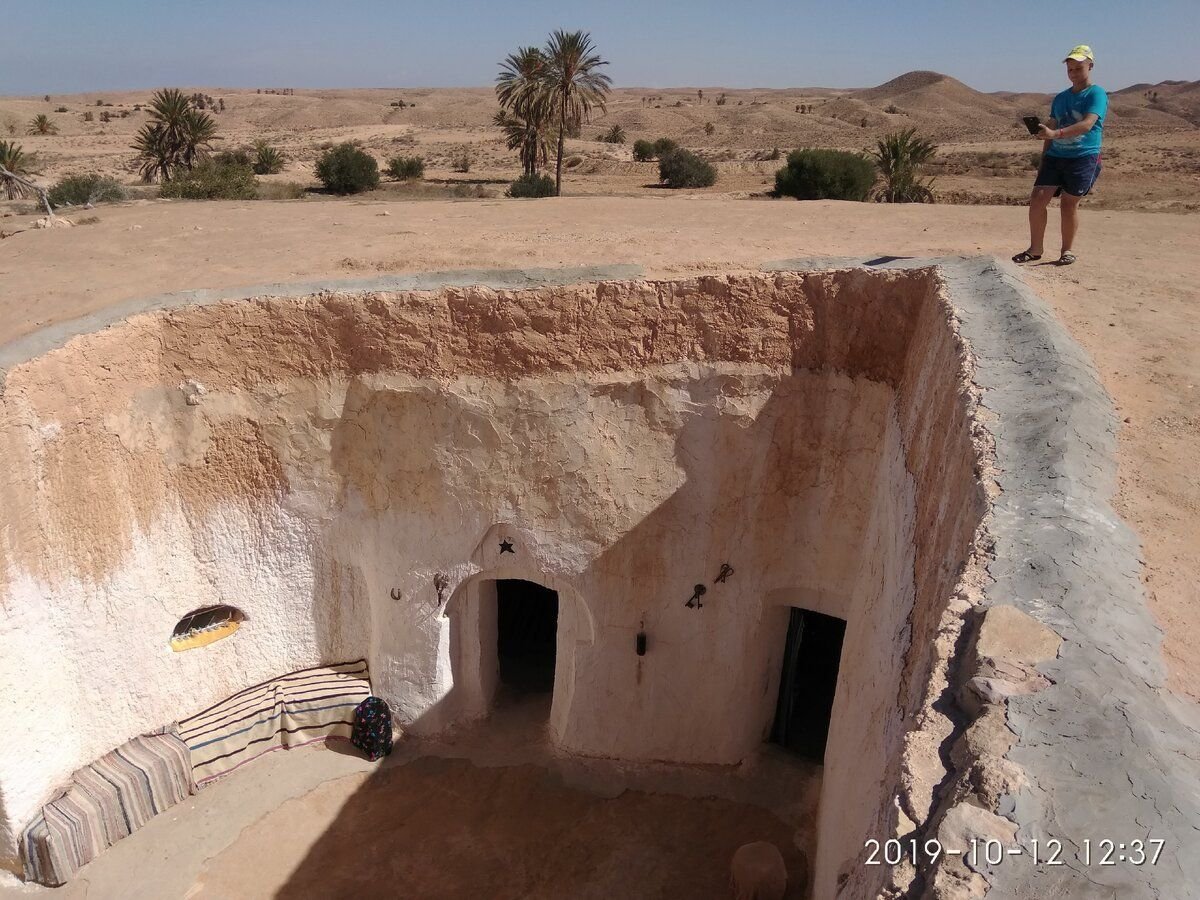 В гостинице Sidi Driss снимали один из эпизодов фильма-легенды. Здесь все, как в обычном отеле - номера, душевые кабины и туалеты, бар, кафе, где постоянно обедают туристические группы. Только комнаты и залы - пещеры без окон. Да и понять, что это гостиница, издалека очень трудно. Ничто не указывает на наличие жилья в пустыне, если только кто-то не сушит постиранное белье.