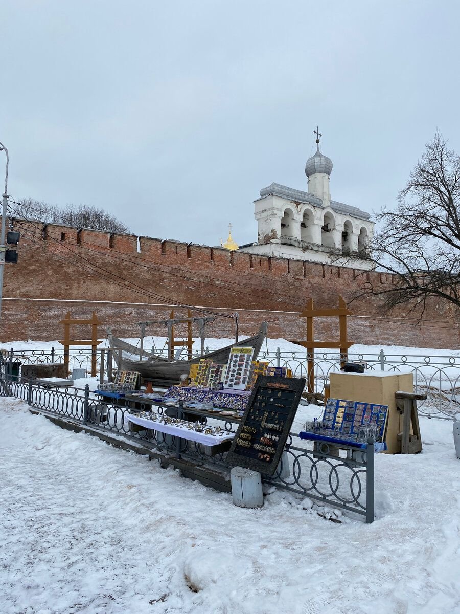 Буквально через дорогу снова расположены различные торговые павильоны, красиво стилизованные под старину, и можно идти дальше и дальше по многочисленным, уютным дорожкам Кремлевского парка, но наш путь лежал дальше – в Ярославово дворище.