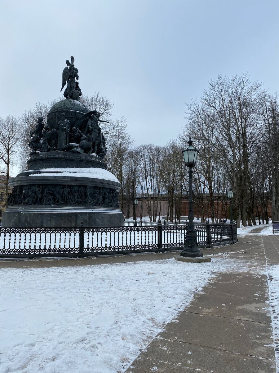 Памятник установлен в 1862 году и посвящен тысячелетию призвания варягов на Русь.