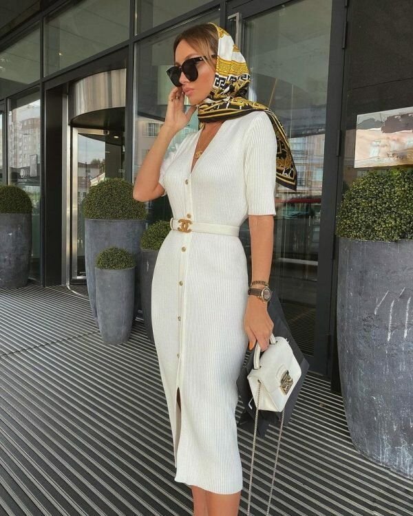 Начнем наш список с всегда беспроигрышного платья-футляр. Если вы решили выглядеть как женщина высокого уровня, им нужно обзавестись точно. И главное, чтобы оно идеально сидело по фигуре и выполнено было из качественного, лучше плотного, материала.