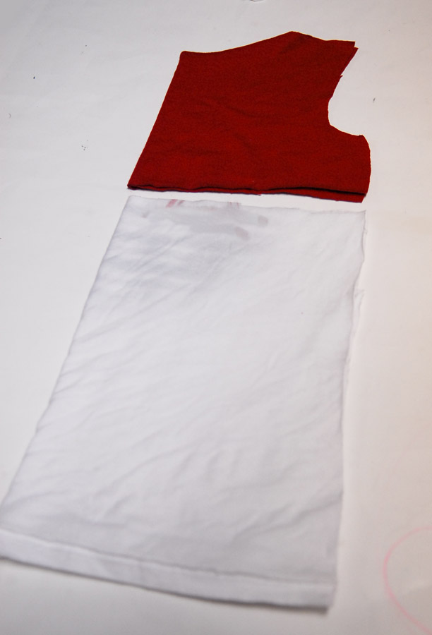 Теперь лиф. Вырезать 2 передние и 2 задние части лифа.Сшейте переднюю и заднюю части вместе в плечах. Затем сшейте их лицевыми сторонами вокруг шеи. Вывернуть на лицевую сторону.