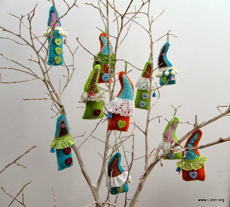 Малюсенькие домики, совсем не стандартной новогодней расцветки... Зато звенят очень по-новогоднему!