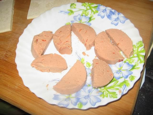 В центр укладываем кусочек паштета, заворачиваем пирожок.