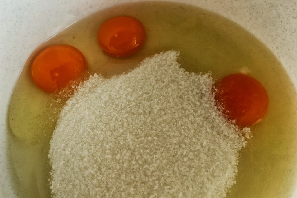 Соединить яйца с сахаром и слегка взбить.