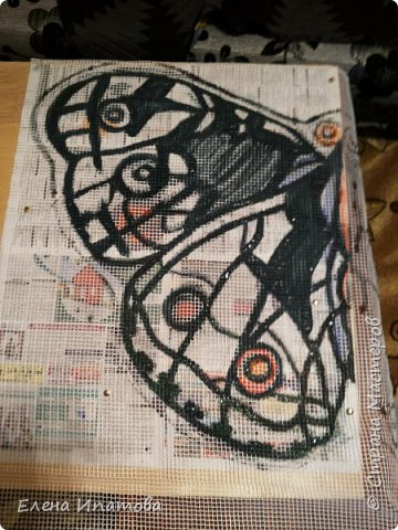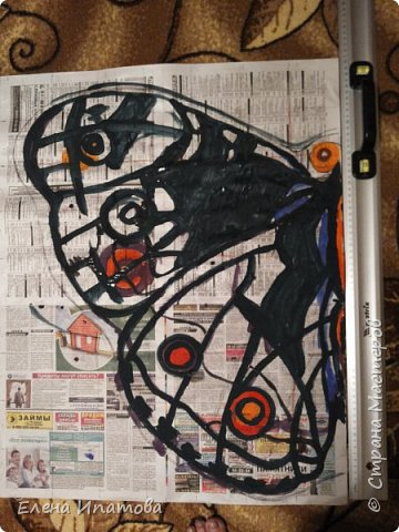 Т.к. мне нужна была большая бабочка, я просто гуашью нарисовала эскиз на газете.