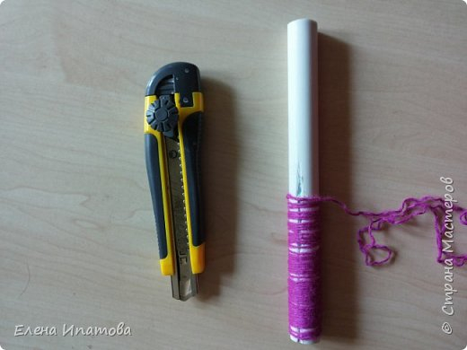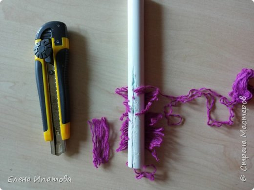 Нож и обрезок пластиковой трубки (остались после замены водоснабжения ). Будем резать пряжу.