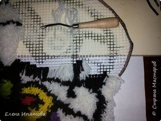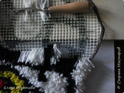 Крючки для ковровой вышивки и пряжа. Я остатков разных насобирала ( остаются после вязания )