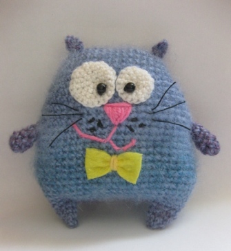 Заполняем наполнителем. Плотно набивать не нужно. Котик должен получиться плосконьким))) Закрываем шов. Сшиваем вот так: