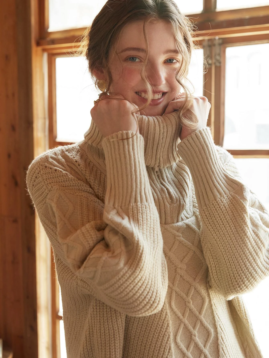 Несмотря на то, что свитер толстый и теплый, он не очень объемный. А значит, его можно будет надевать под верхнюю одежду. В общем, этот свитер идеально продуман для нашего климата, для холодной поздней осени и зимы.