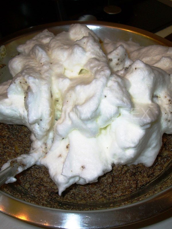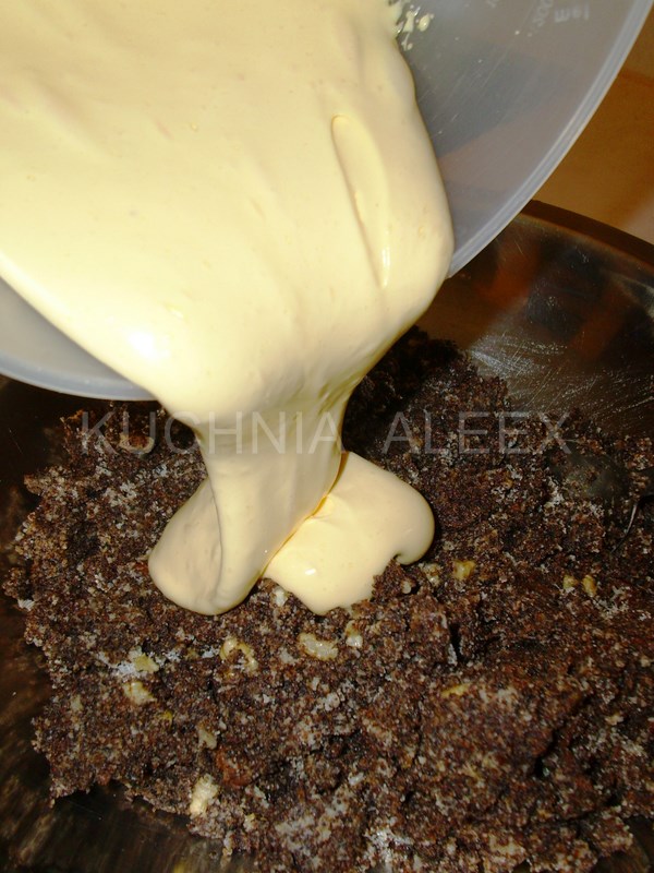 3 Яичные желтки взбить в пышную массу . Это должно занять около 7 минут. Отдельно до жестких пиков взбить белки. Объедините маковую массу с желтками , затем аккуратно добавьте яичные белки.