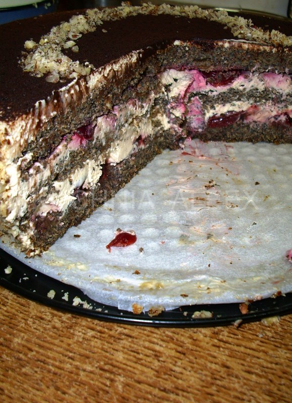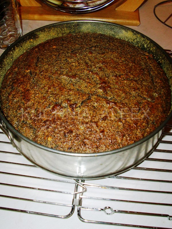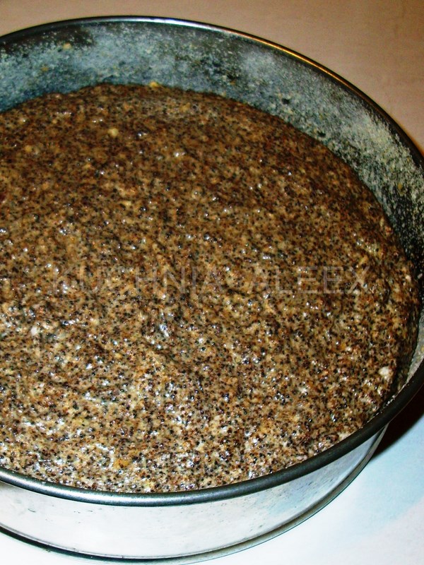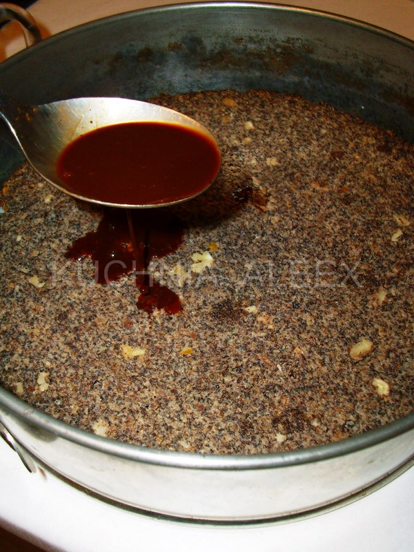 1 Приготовление макового коржа (я сделала его за день до): форм у для выпечки диаметром 24 см смазать маслом и посыпать мукой.Разогреть духовку до 175 градусов.