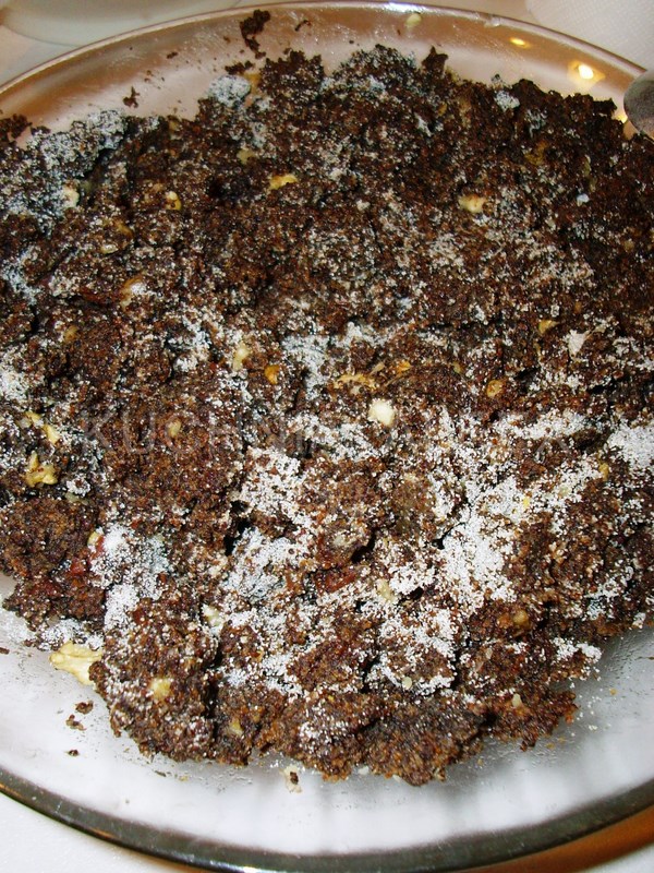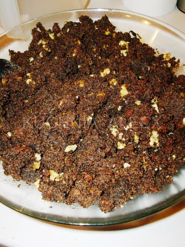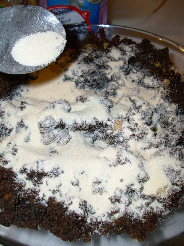 2 Маковую массу с орехами и изюмом смешать с манной крупой.