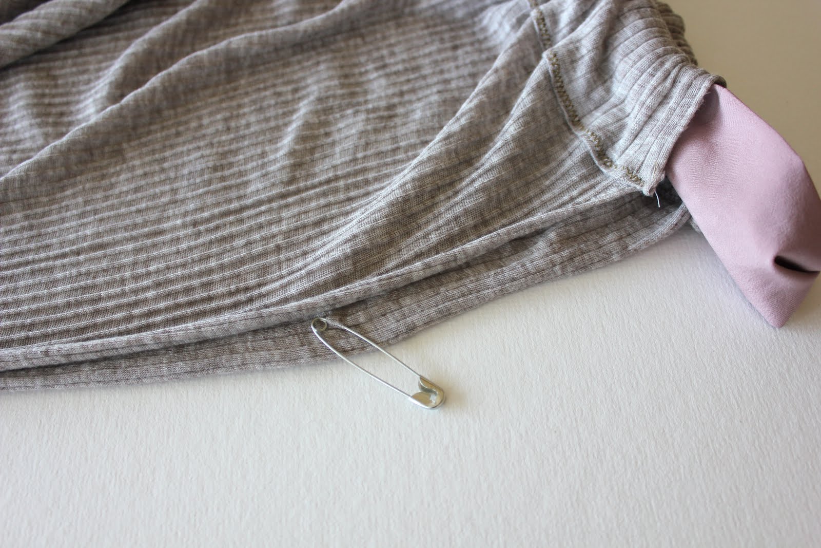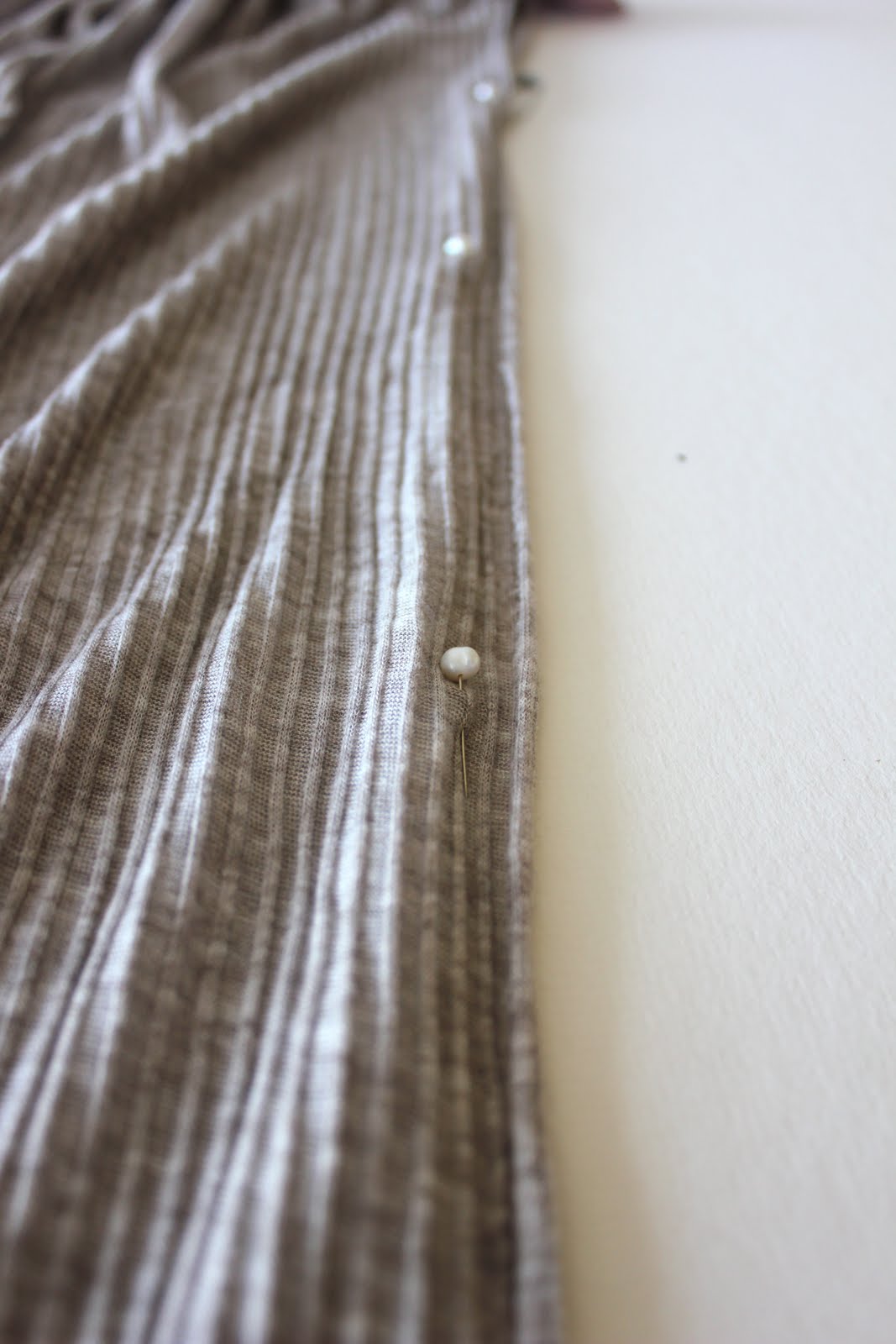 At this point I tried it on and determined where the seams on the side should begin. I marked this place with a pin.