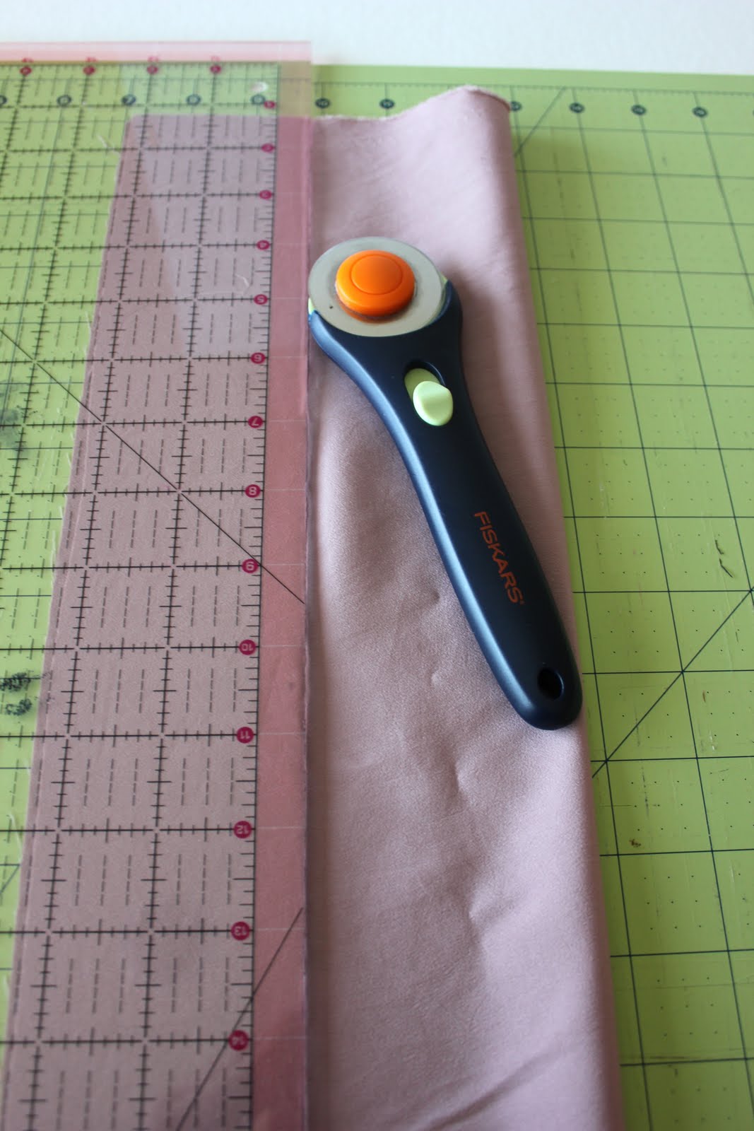 Cut right down the middle of your fabric so that you have two 45" by 6" strips.