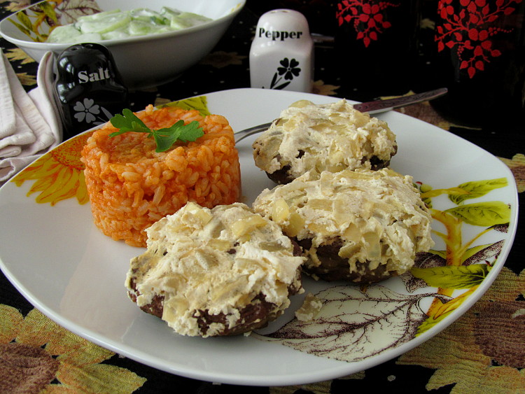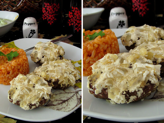 Для соуса, лук нарезать мелким кубиком и  спассеровать на растительном масле до мягкости. Добавить сметану, немного посолить, перемешать и снять с огня.