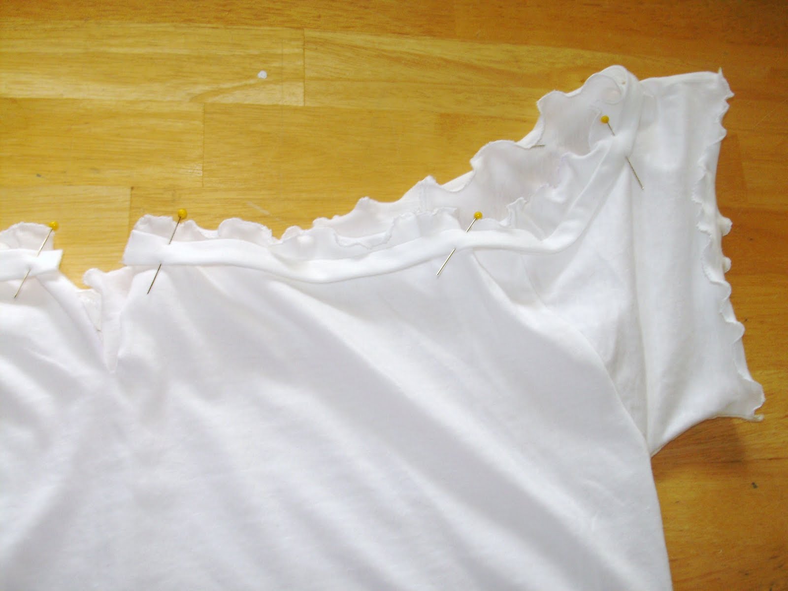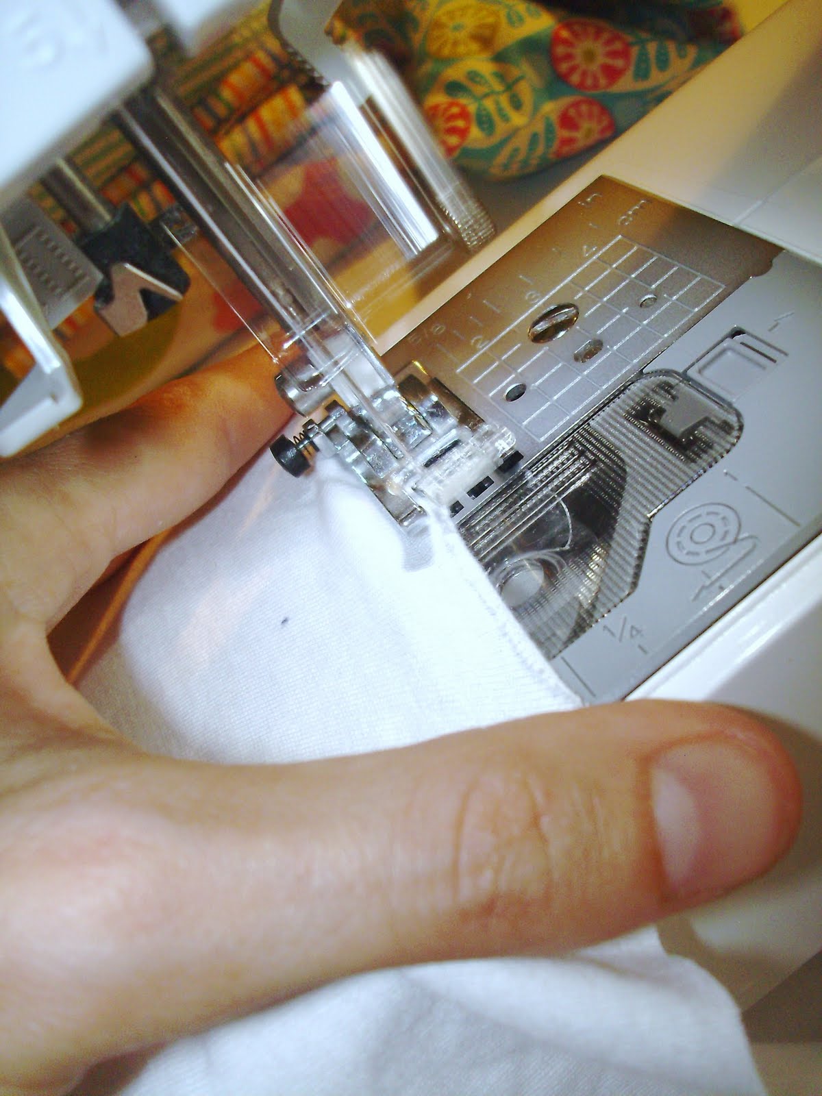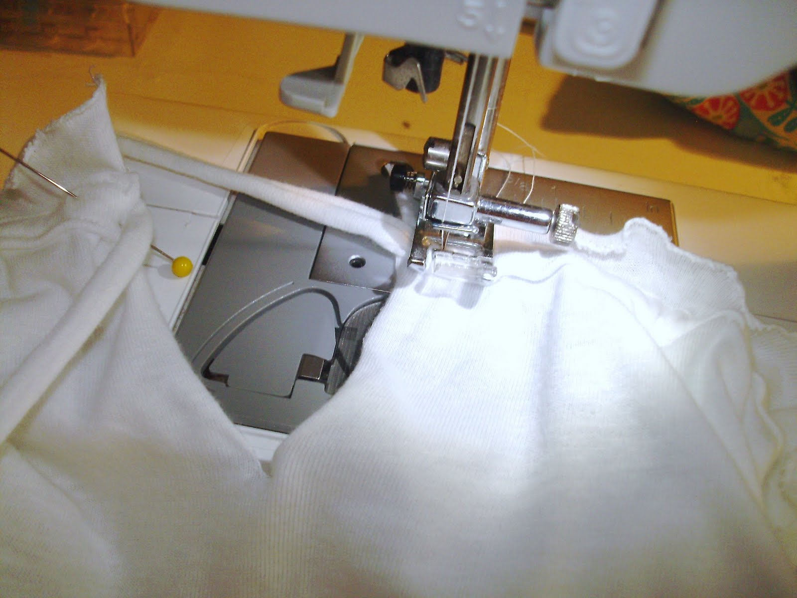 Шаг 5: Рукава и подол прошиваем края зигзагом и слегка растягиваем, чтобы они были слегка волнистыми