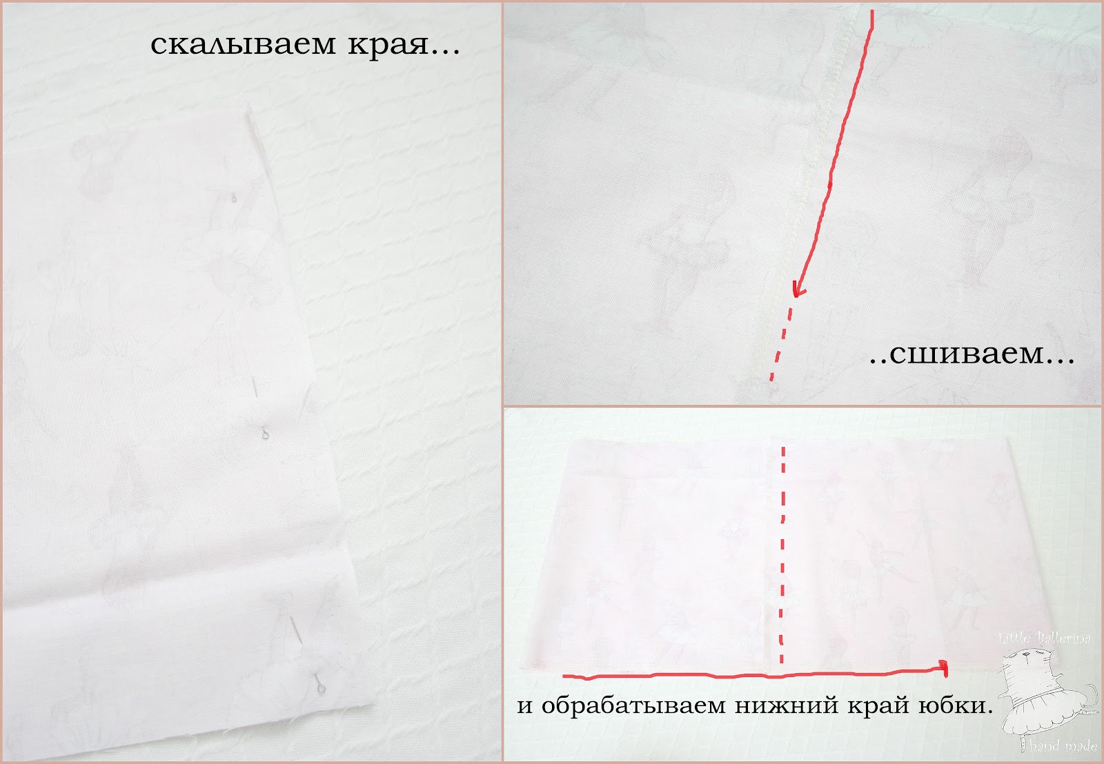 2. Верхний край будущей юбки обрабатываем и собираем, ее объем должен быть равен объему талии майки.