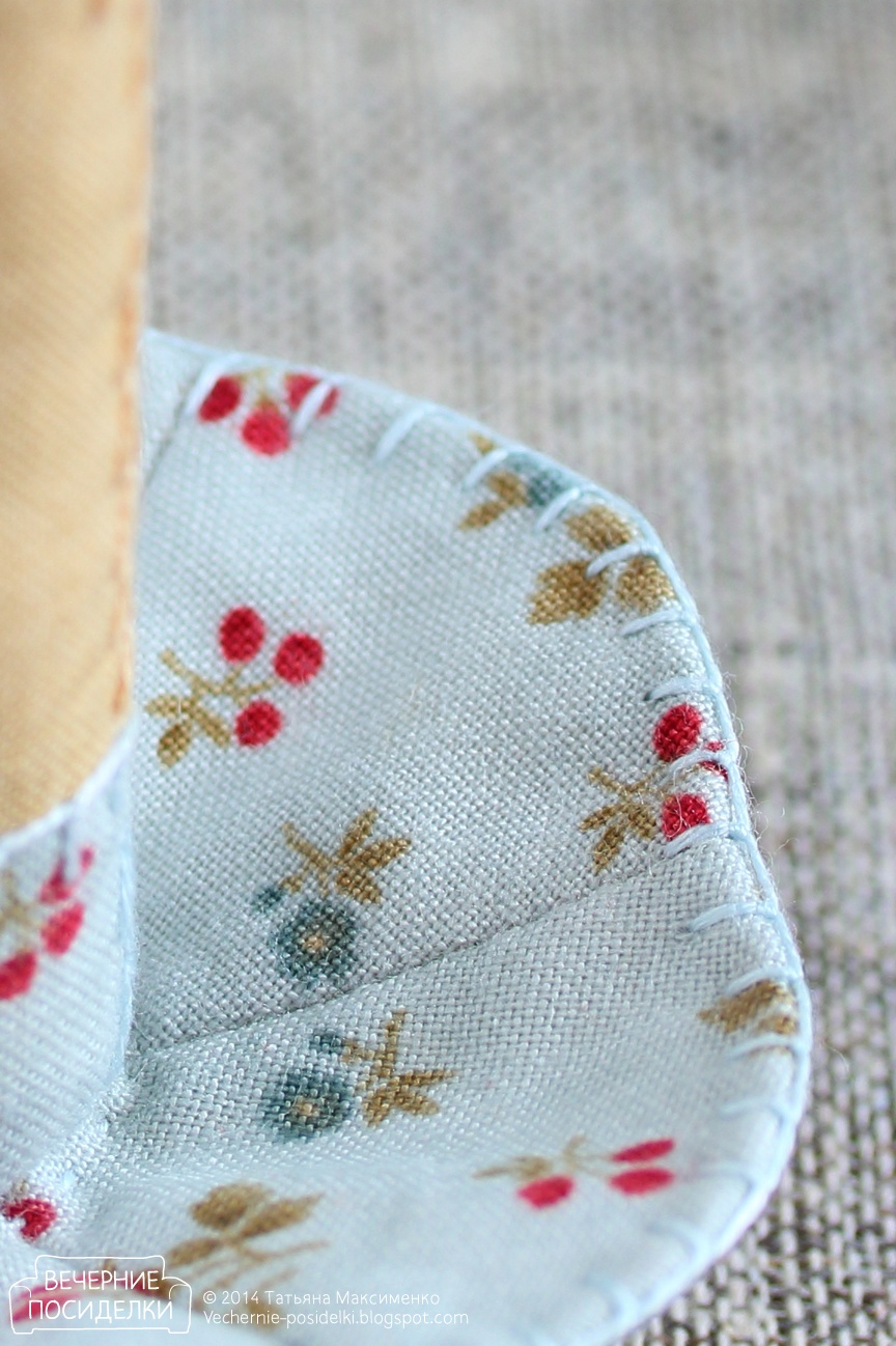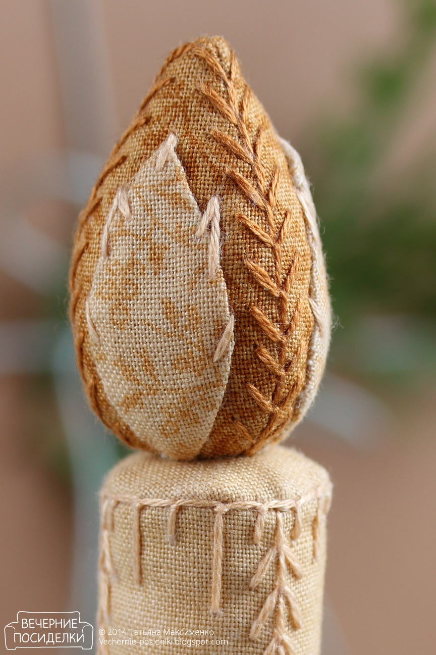 Буду ещё игрушки на прищепках шить. Если ничего другого не придумается, то этих свечей нашью штук пять, ну или хотя бы три — в разноцветных подсвечниках они должны хорошо смотреться на ёлке. Часто мучаюсь, пытаясь закрыть пустоты между ветками чем-нибудь свешивающимся сверху, когда свешивать совершенно неоткуда, а прищепочные игрушки куда хочешь можно прилепить, хоть на кончик ветки. Крепление как у ежа, ничего нового:Волнистый край подсвечника обшит обмёточным швом.