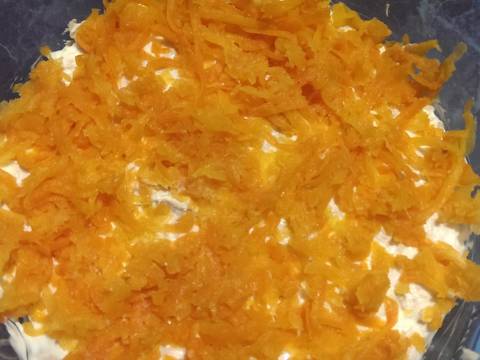 Натираем сыр, так же смазываем майонезом (что бы салат получился не очень сухой)