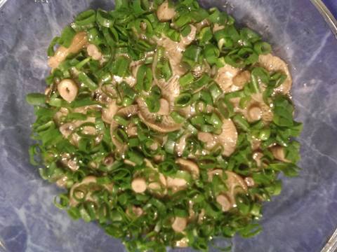 На грибы идет слой зелени (укроп, петрушка) - в нашем случае зеленый лук