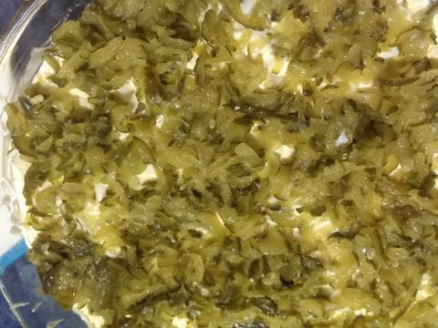 Так же на терке трем соленые огурчики. Не забываем немного отжать влагу.
