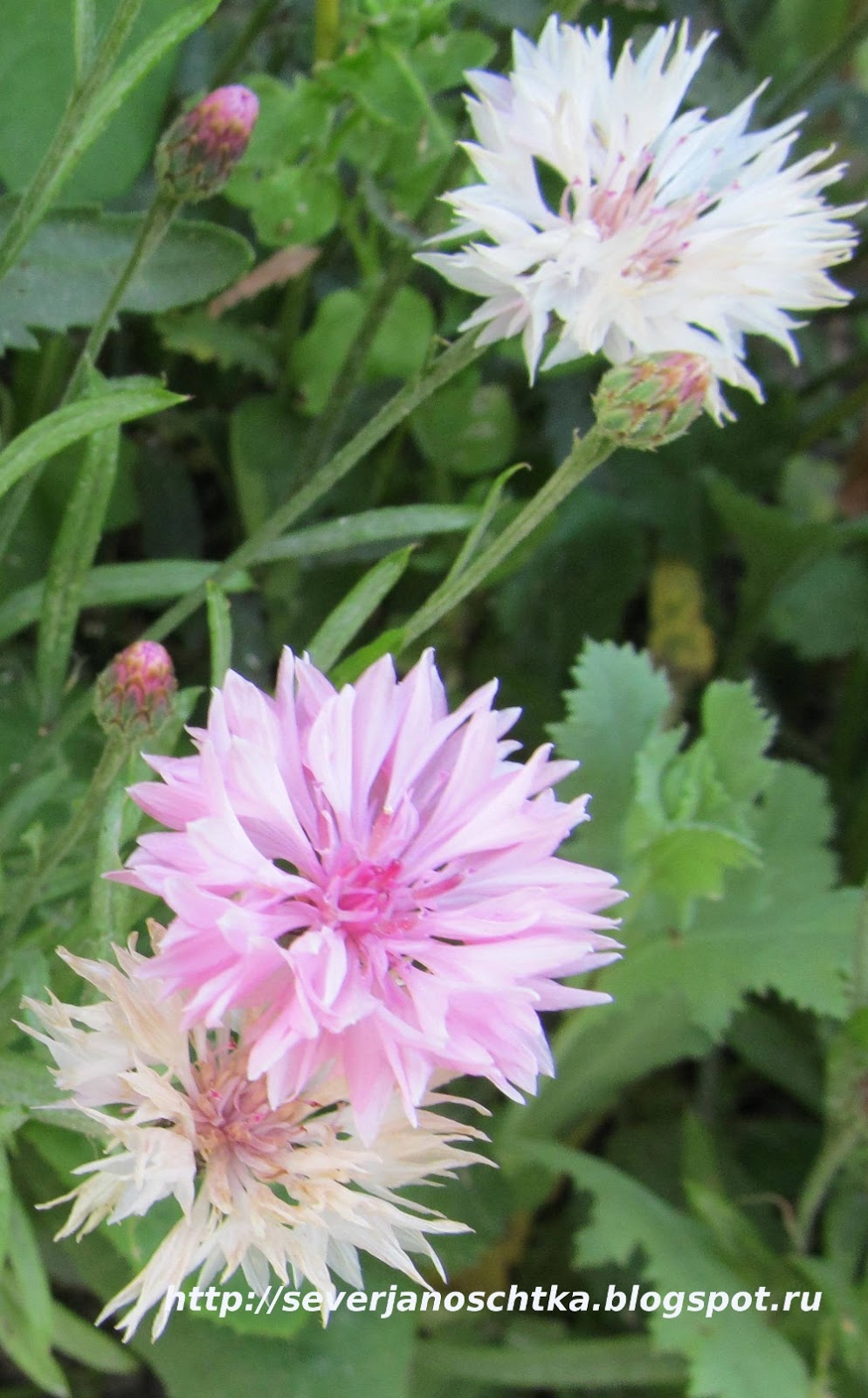 Еще в детстве слышала песню:"Разбрелись возле тихой реки васильки, васильки, васильки..." Песня нравилась и слова её остались в памяти. Правда, никогда не видела, чтобы васильки синие, а песне поется о них, росли у реки. Это полевые цветы и очень часто они растут в посевах ржи и пшеницы. Когда мы первый раз выращивали рожь, то было такое чувство, что чего-то на участке с рожью не хватает. Потом поняли - васильков. Настолько сильна ассоциация: васильки на ржаном поле. Конечно, дикорастущих васильков у нас не было, а вот садовые васильки приходилось выращивать не раз. Нынешним летом они тоже радовали нас своими разноцветными корзинками.