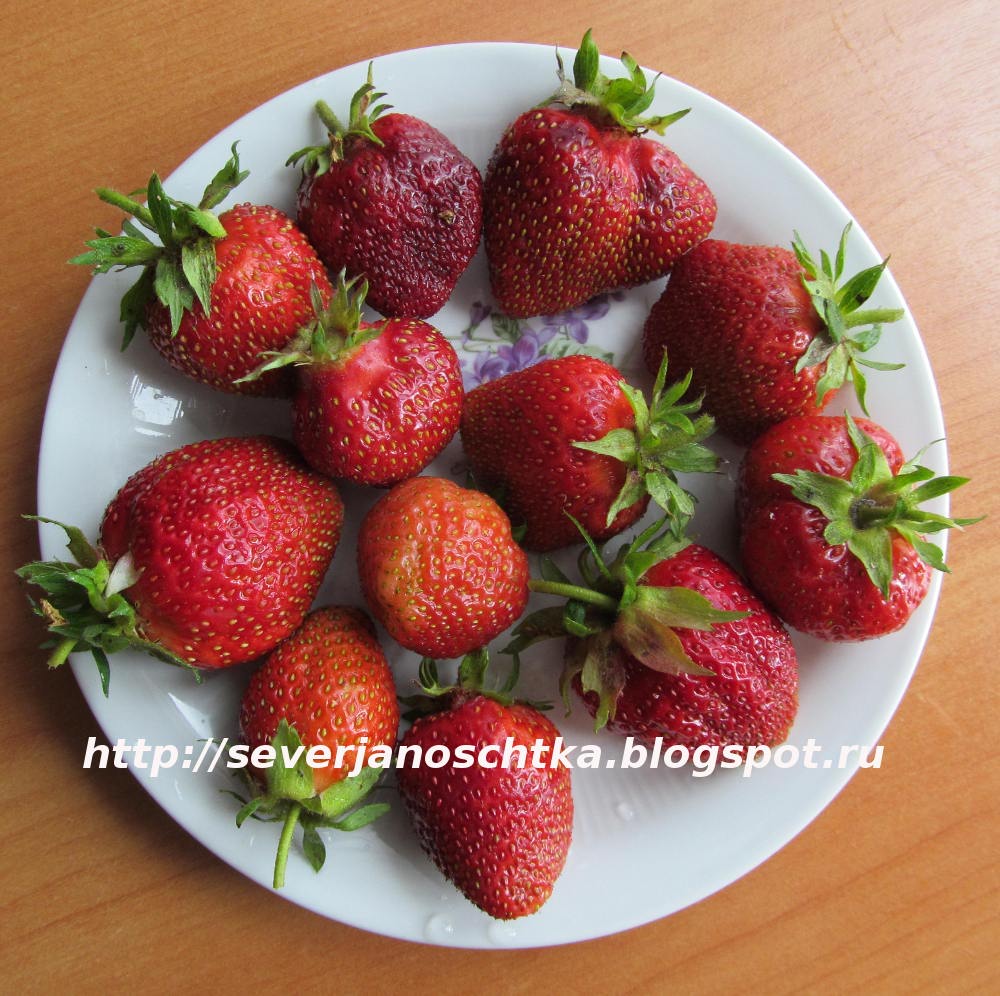 Нынче клубника очень хорошо цвела, обещая щедрый урожай. И вот в день летнего солнцестояния, 21 июня, сняла первые ягодки. Конечно, с ботанической точки зрения, плоды клубники (земляники) нельзя называть ягодами. Её плод не сочный, а сухой - орешек. Орешки расположены по верху сочной, сладкой мякоти. В быту их называют семечками.